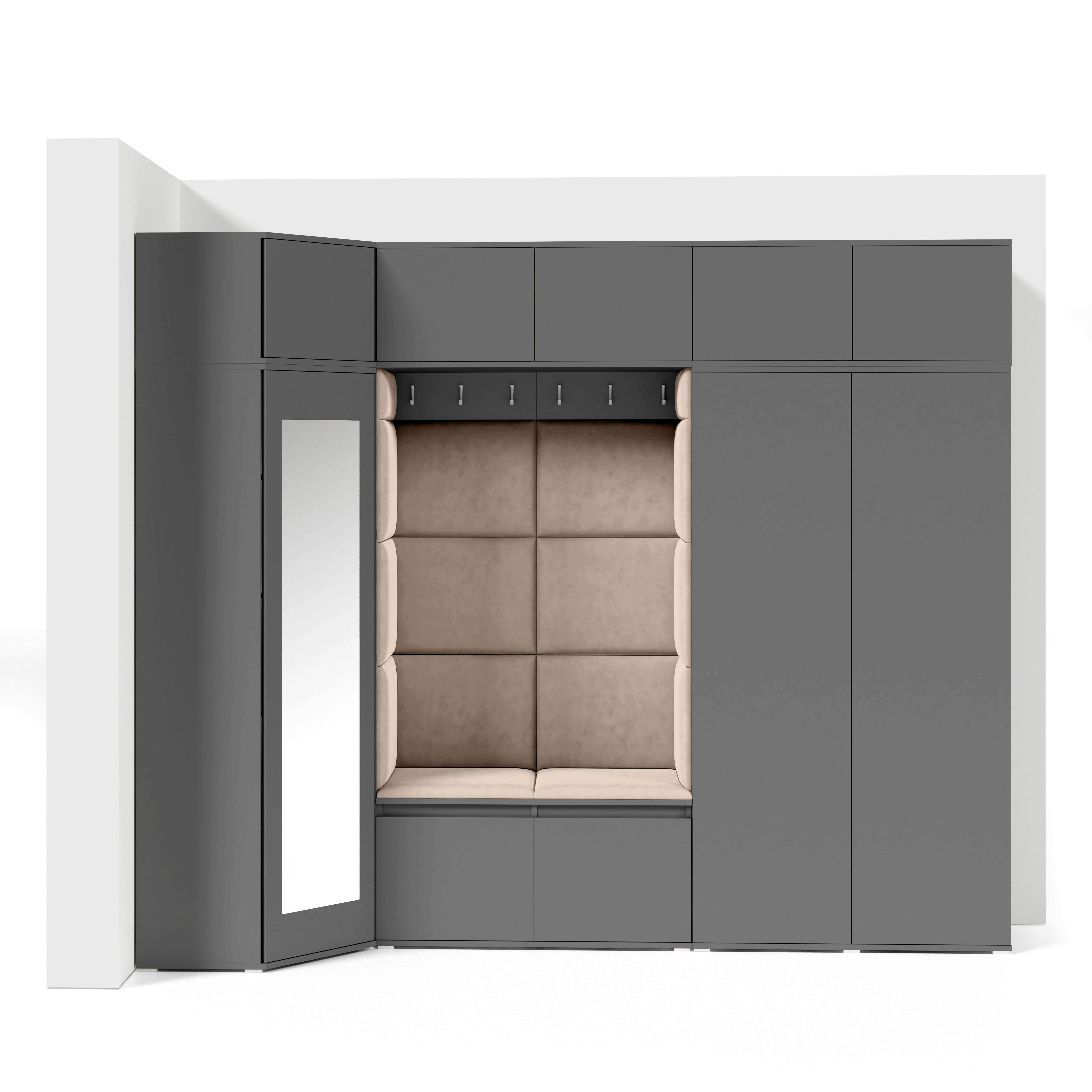 Eka Předsíňová stěna s čalouněnými panely Trinity 39 - Grafit / Světlá béžová 2303
