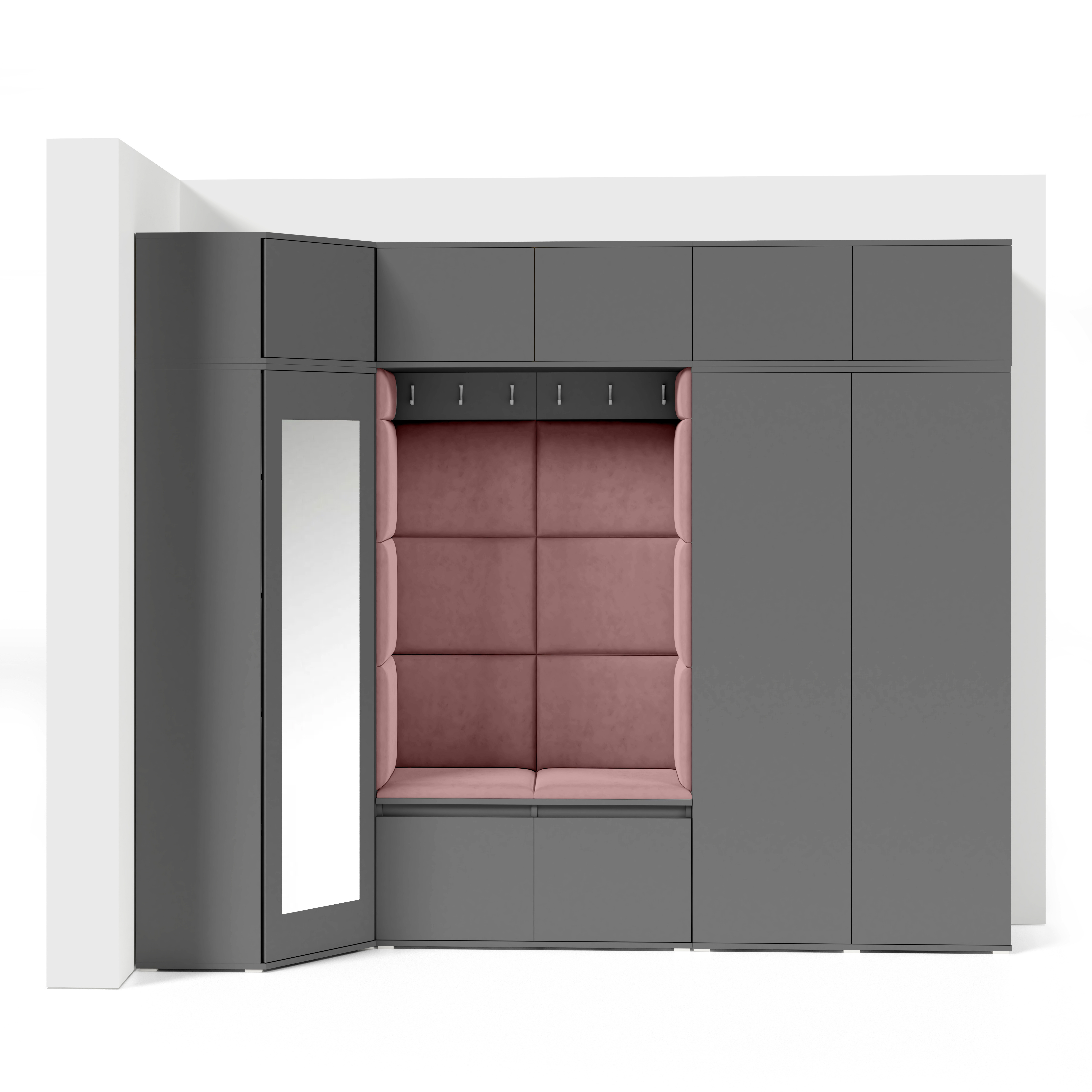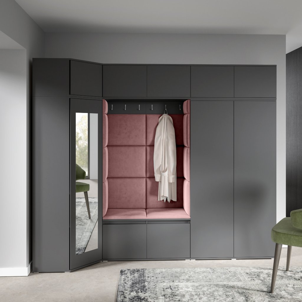 Eka Předsíňová stěna s čalouněnými panely Trinity 39 - Grafit / Tmavá růžová 2323