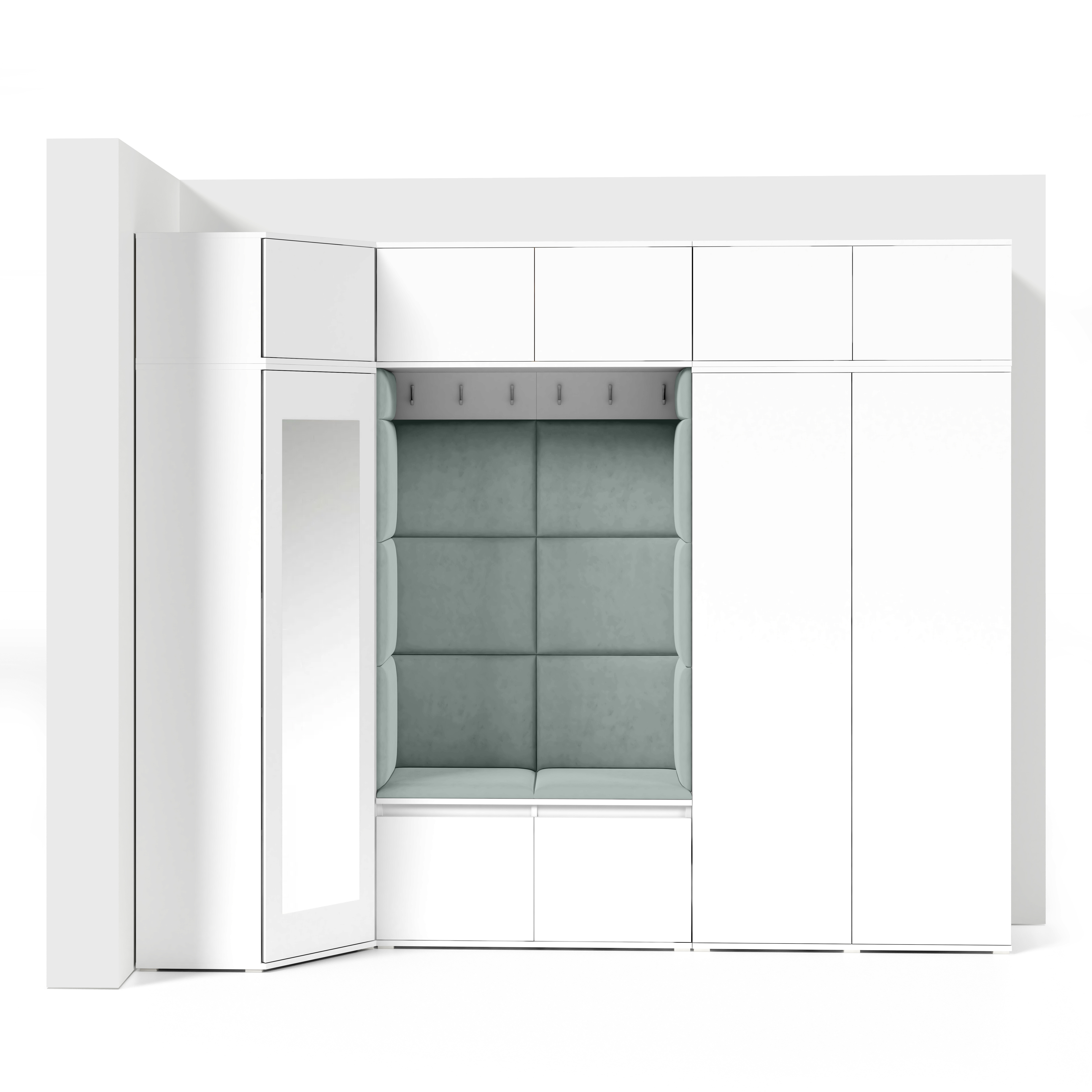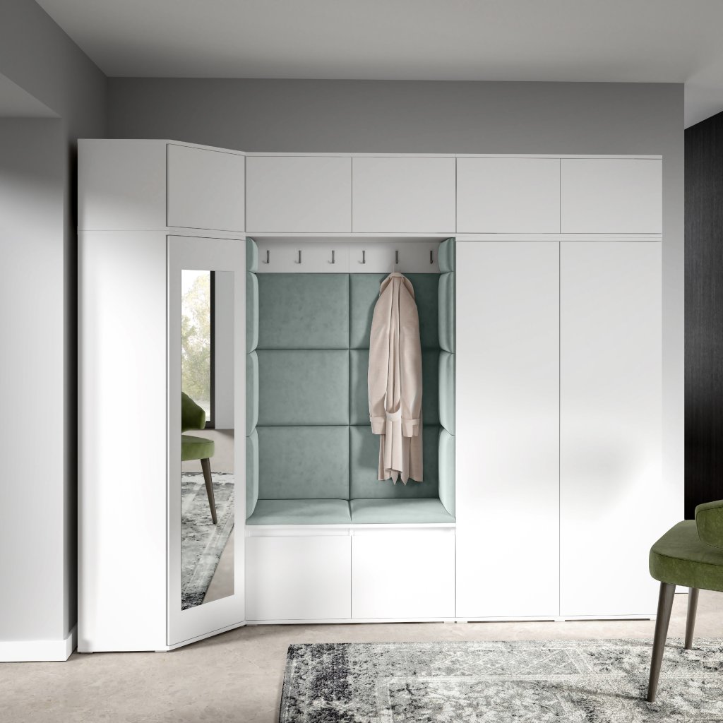 Eka Předsíňová stěna s čalouněnými panely Trinity 39 - Bílá / Světlá zelená 2321