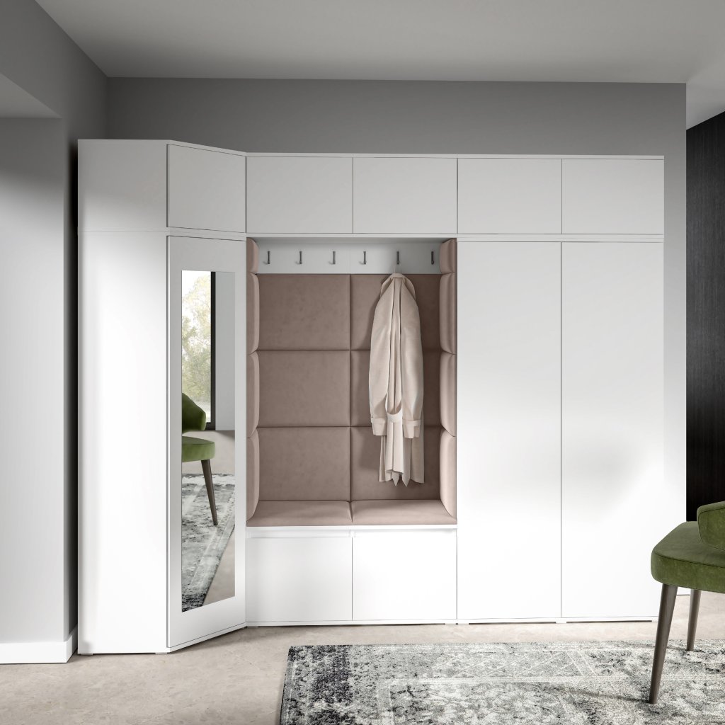 Eka Předsíňová stěna s čalouněnými panely Trinity 39 - Bílá / Tmavá béžová 2305