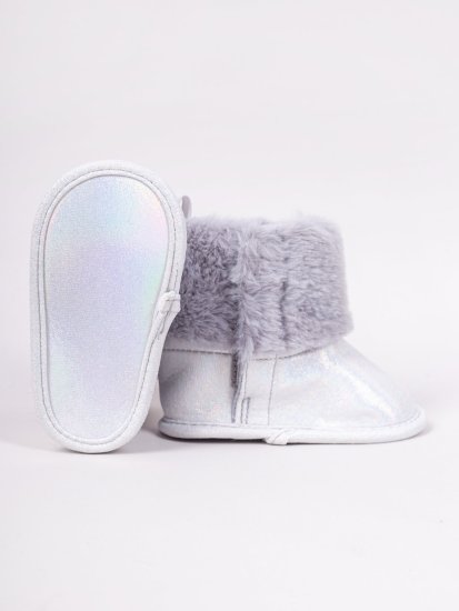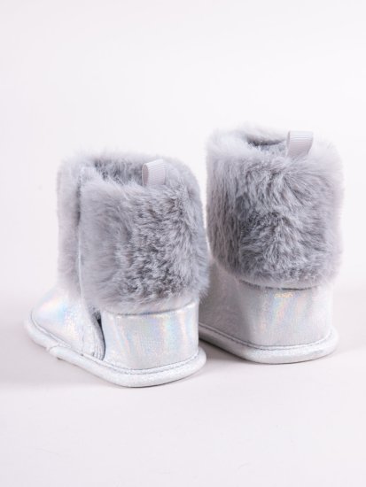 MR Zimní capáčky - stříbrné s kožíškem, 0 - 6 měsíců