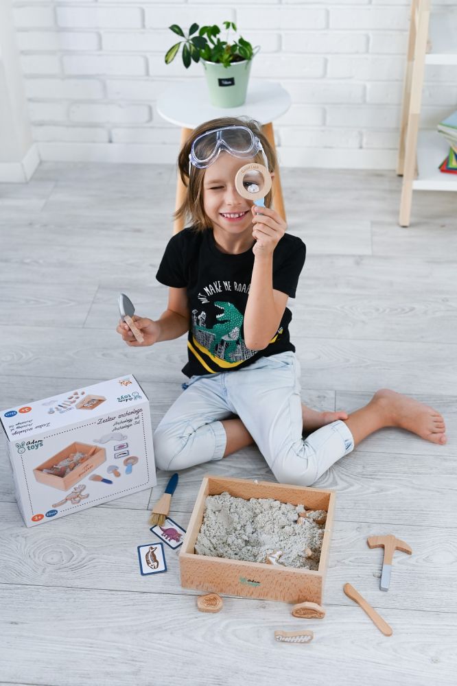 Zajímá vaše dítě archeologie? Je zvídavý a zajímá se o pravěkou problematiku? Nebo je možná zvědavý na svět dinosaurů? Tato sada byla vytvořena pro fanoušky dávných dob, známých pouze z vykopávek paleontologů. S naší sadou se děti mohou stát malými průzkumníky a zažít úžasné dobrodružství. Nástroje obsažené v sadě vám umožní objevit hluboko pohřbené pozůstatky dinosaurů. Důležitá je nejen přesnost, ale také přesnost, aby nedošlo k poškození nálezů. Každý kus kostry je nutné vykopat a vyčistit pomocí potřebného příslušenství. Taková zábava jistě inspiruje malého archeologa k prohloubení znalostí v oblasti paleontologie. Při vykopávkách si vyvine přesnost pohybů a trpělivost, ale také jemnost a pečlivost. Archeologické vykopávky jsou vzdělávací zábavou, která umožní vašemu dítěti rozvíjet manuální dovednosti, procvičovat trpělivost a získávat znalosti v oblasti archeologie.