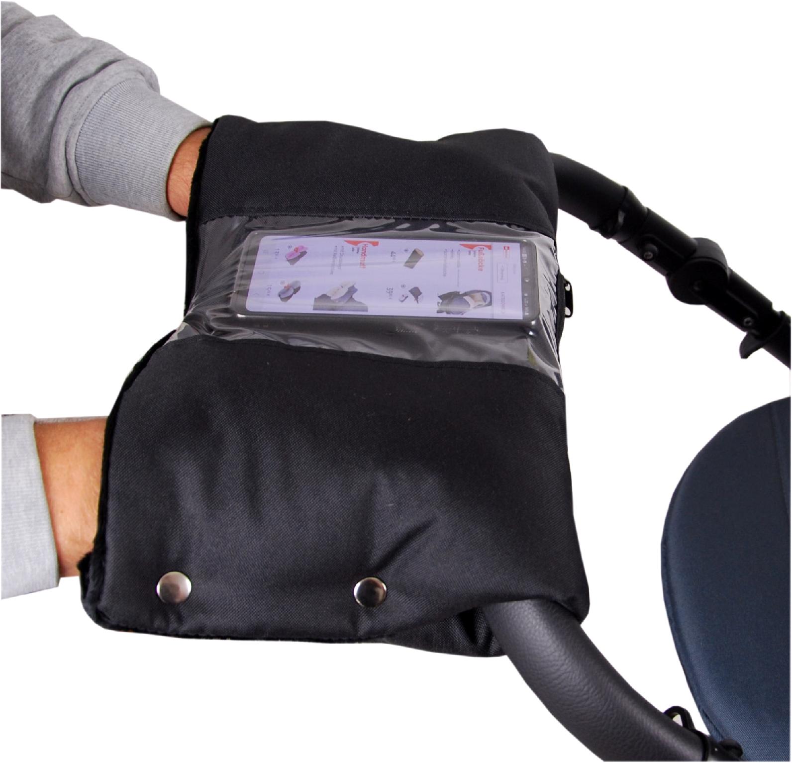 BBL Zimní rukávník na kočárek s voděodolným krytem na telefon - černá / černá