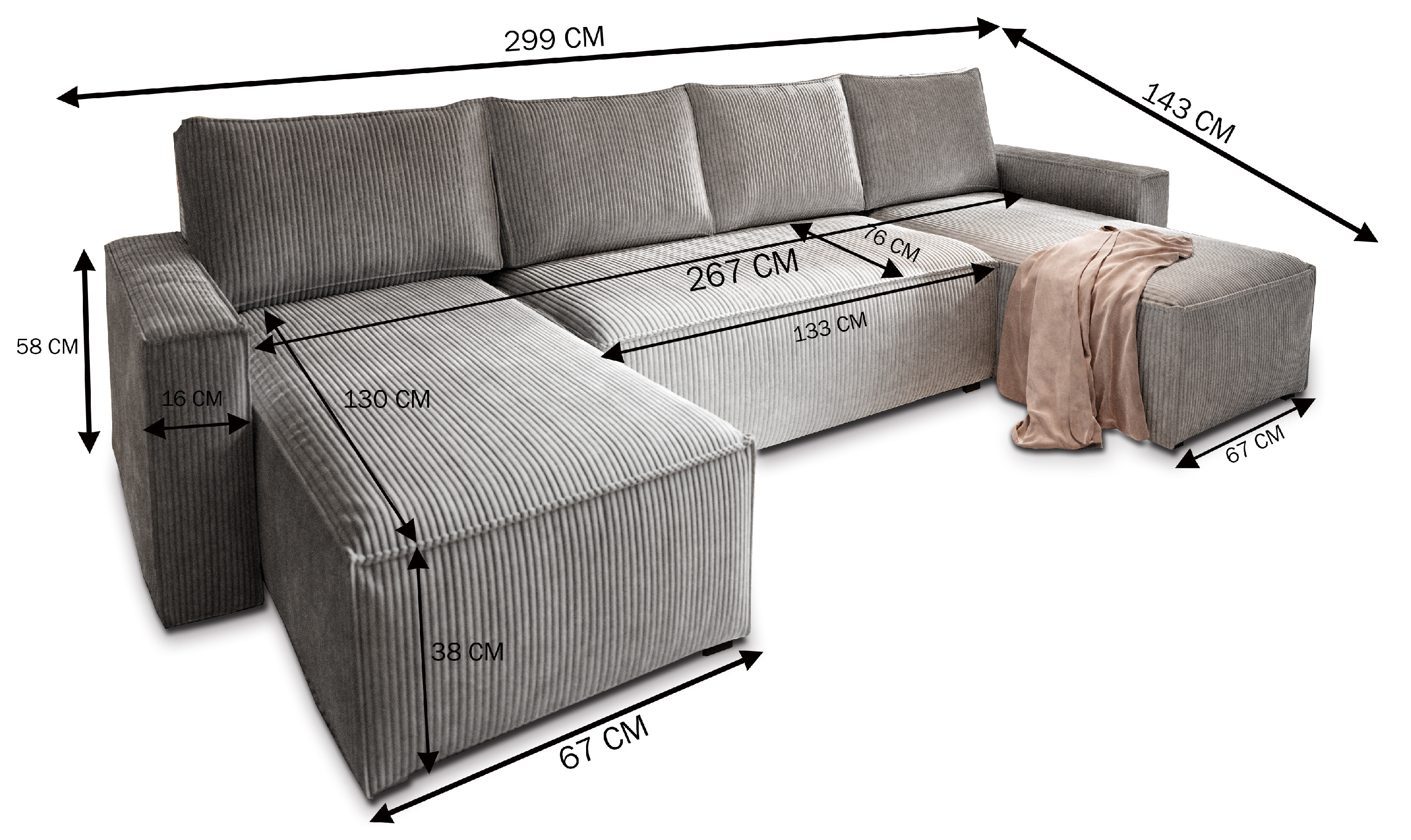 Sedačka ASTRA ve tvaru U je spolehlivým parťákem do každého obýváku. Nabízí spoustu místa pro pohodlné sezení pro rodinu, návštěvy, ale i chvíle, kdy chceš jen natáhnout nohy a užívat si klid. Potahy jsou ušité z tkanin s certifikací OEKO-TEX®, takže si můžeš být jistý, že jsou šetrné k tobě i k přírodě. A aby ladila i s tvým vkusem? Vyber si barvu látky – sedačku nabízíme v několika elegantních variantách. ️ Pohodlí pro každý den ️ Stále místo k relaxaci Řešení s úložným prostorem Výběr látky Pohodlí na každý den ✨ Elegantní vzhled Jednoduchá montáž V balení najdeš: Doprava až domů Podělte se s námi o Váš názor. Vaše zkušenost pomůže ostatním zákazníkům při výběru té správné postele pro jejich pohodlný spánek. Sedačka je dodávána bez dekorací zobrazených na ilustračních fotografiích. Napište nám, rádi poradíme s čímkoli, co vás zajímá.Pohodlí ve tvaru Ú(tulného) prostoru