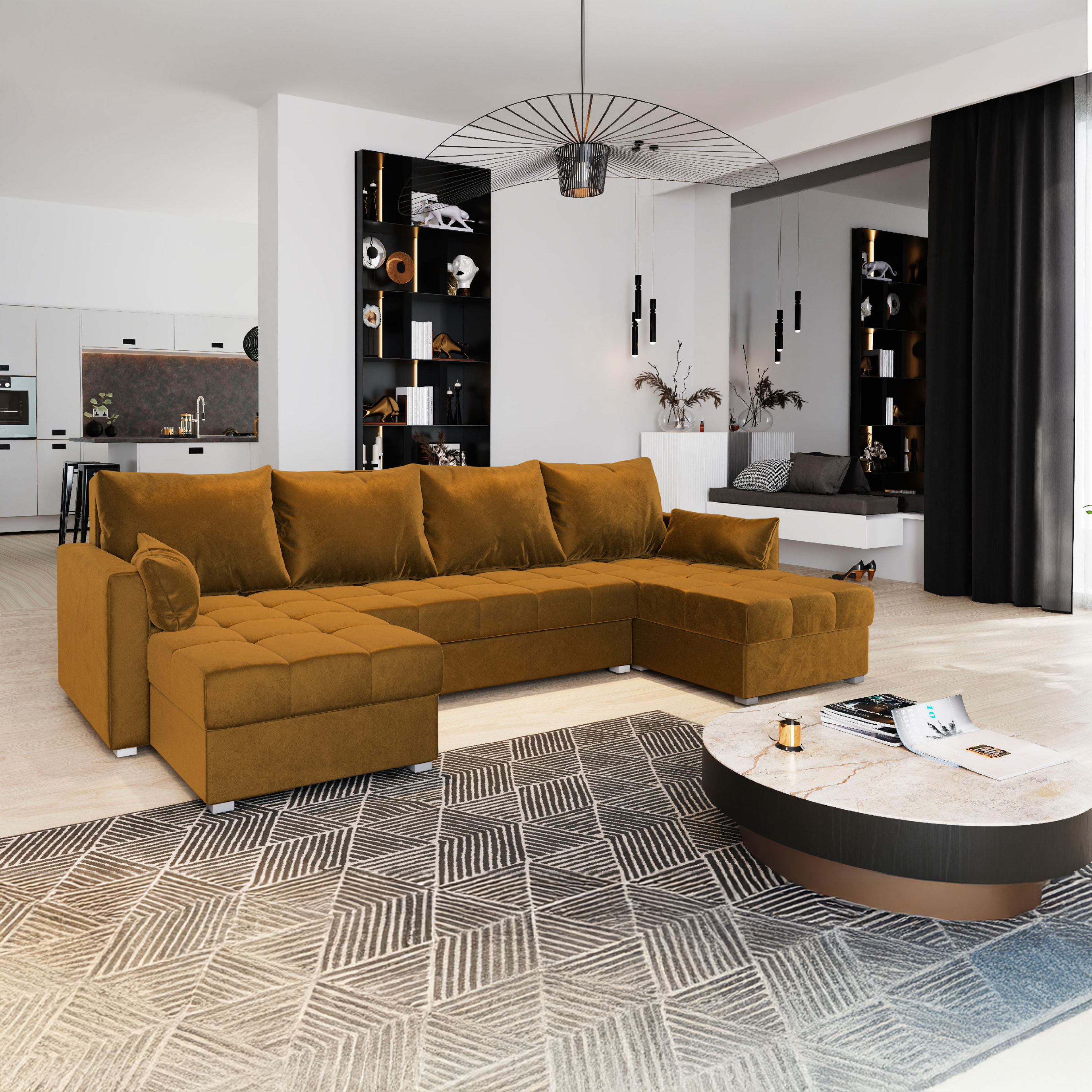 Sedačka NIVA ve tvaru U je spolehlivým parťákem do každého obýváku. Nabízí spoustu místa pro pohodlné sezení pro rodinu, návštěvy, ale i chvíle, kdy chceš jen natáhnout nohy a užívat si klid. Potahy jsou ušité z tkanin s certifikací OEKO-TEX®, takže si můžeš být jistý, že jsou šetrné k tobě i k přírodě. A aby ladila i s tvým vkusem? Vyber si barvu látky – sedačku nabízíme v několika elegantních variantách. ️ Pohodlí pro každý den ️ Stále místo k relaxaci Řešení s úložným prostorem Výběr látky Pohodlí na každý den ✨ Elegantní vzhled Jednoduchá montáž V balení najdeš: Doprava až domů Podělte se s námi o Váš názor. Vaše zkušenost pomůže ostatním zákazníkům při výběru té správné postele pro jejich pohodlný spánek. Sedačka je dodávána bez dekorací zobrazených na ilustračních fotografiích. Napište nám, rádi poradíme s čímkoli, co vás zajímá.Pohodlí ve tvaru Ú(tulného) prostoru