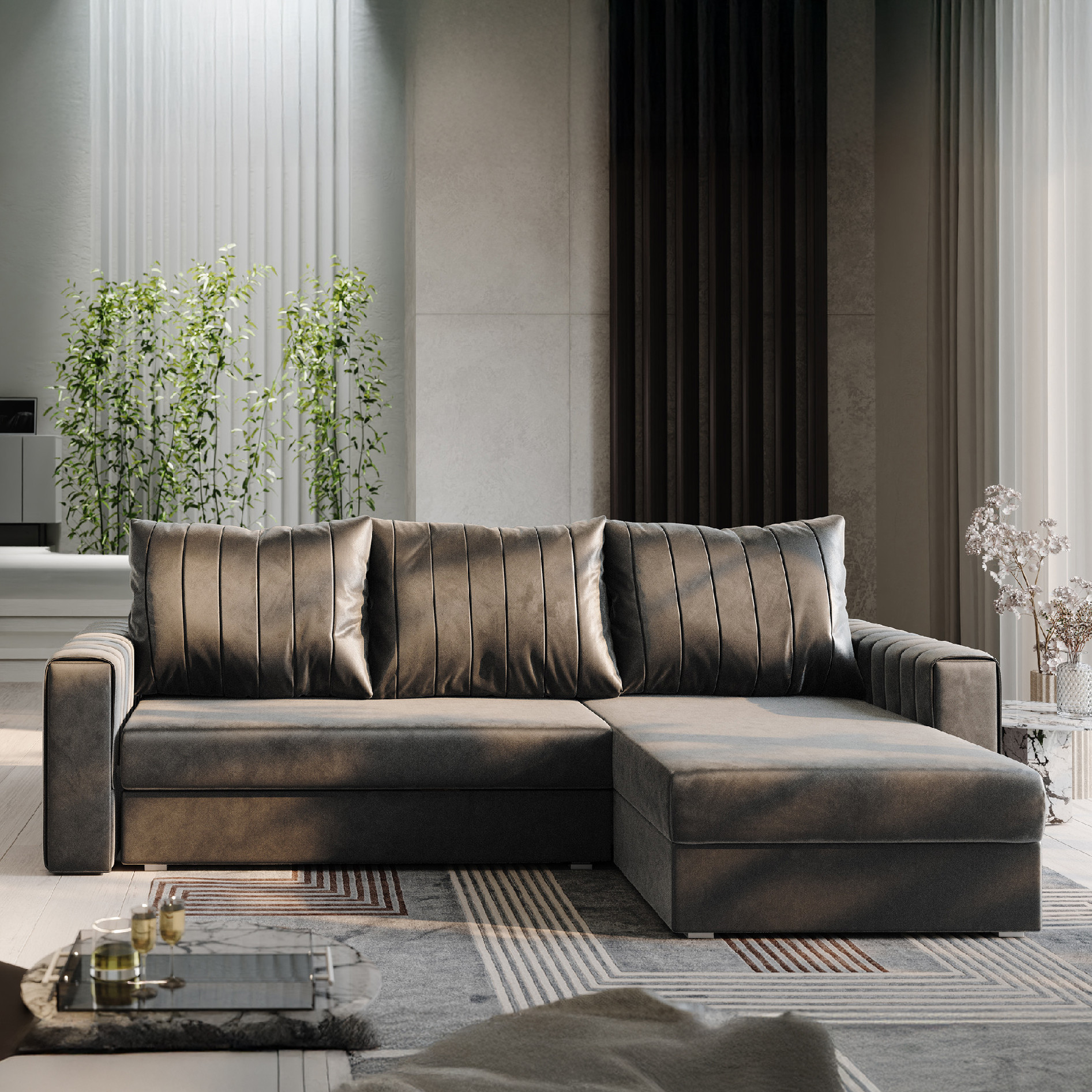 PRM Rohová sedačka KARL, 236 cm Roh pohovky: Pravý roh, Barva látky: PAROS 06 (Tmavá šedá)