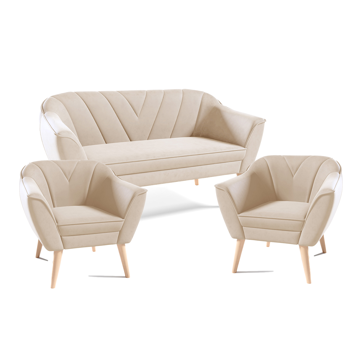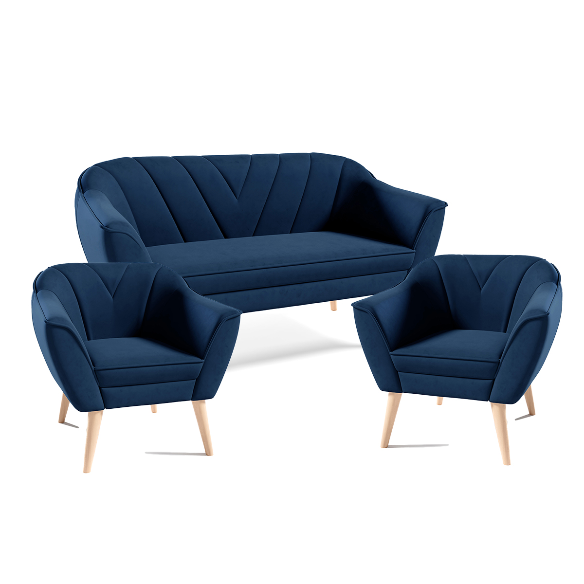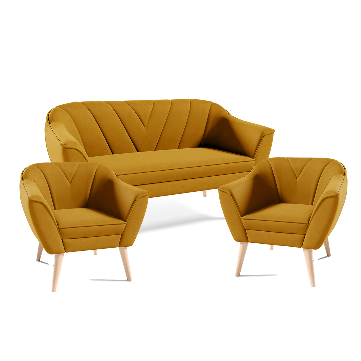Eka Sedací souprava - Pohovka LOVA 150 cm + 2x křeslo LOVA Látka Velutto: Velutto 10 - Zelená, Výběr nohou: Přírodní
