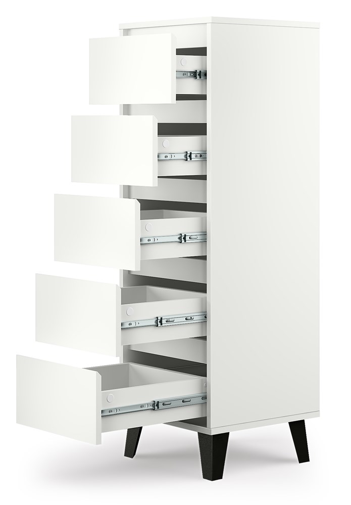 MODERNÍ KOMODA / SKŘÍŇKA S ČERNÝMI NOŽKAMI A 5 ZÁSUVKAMI