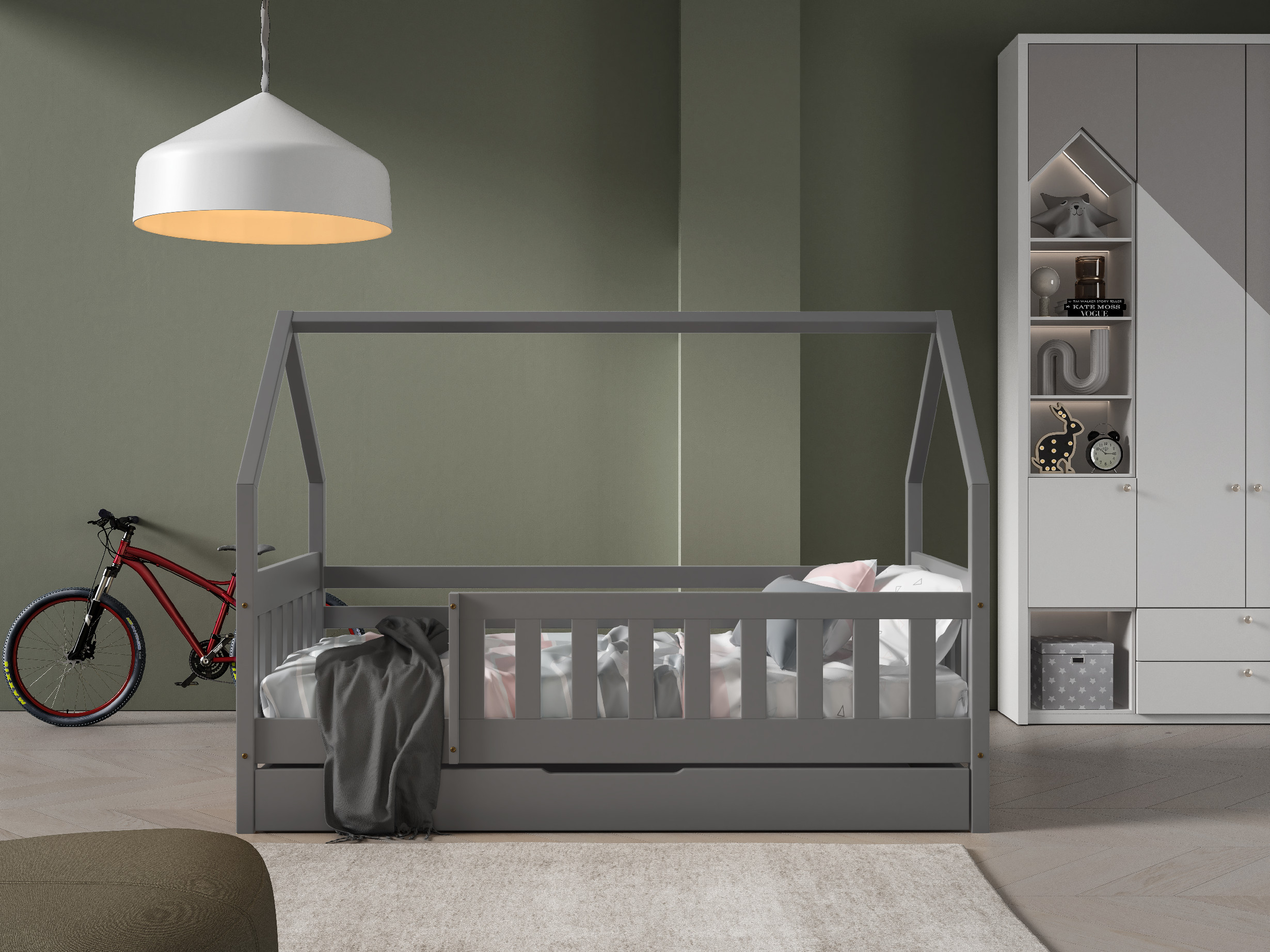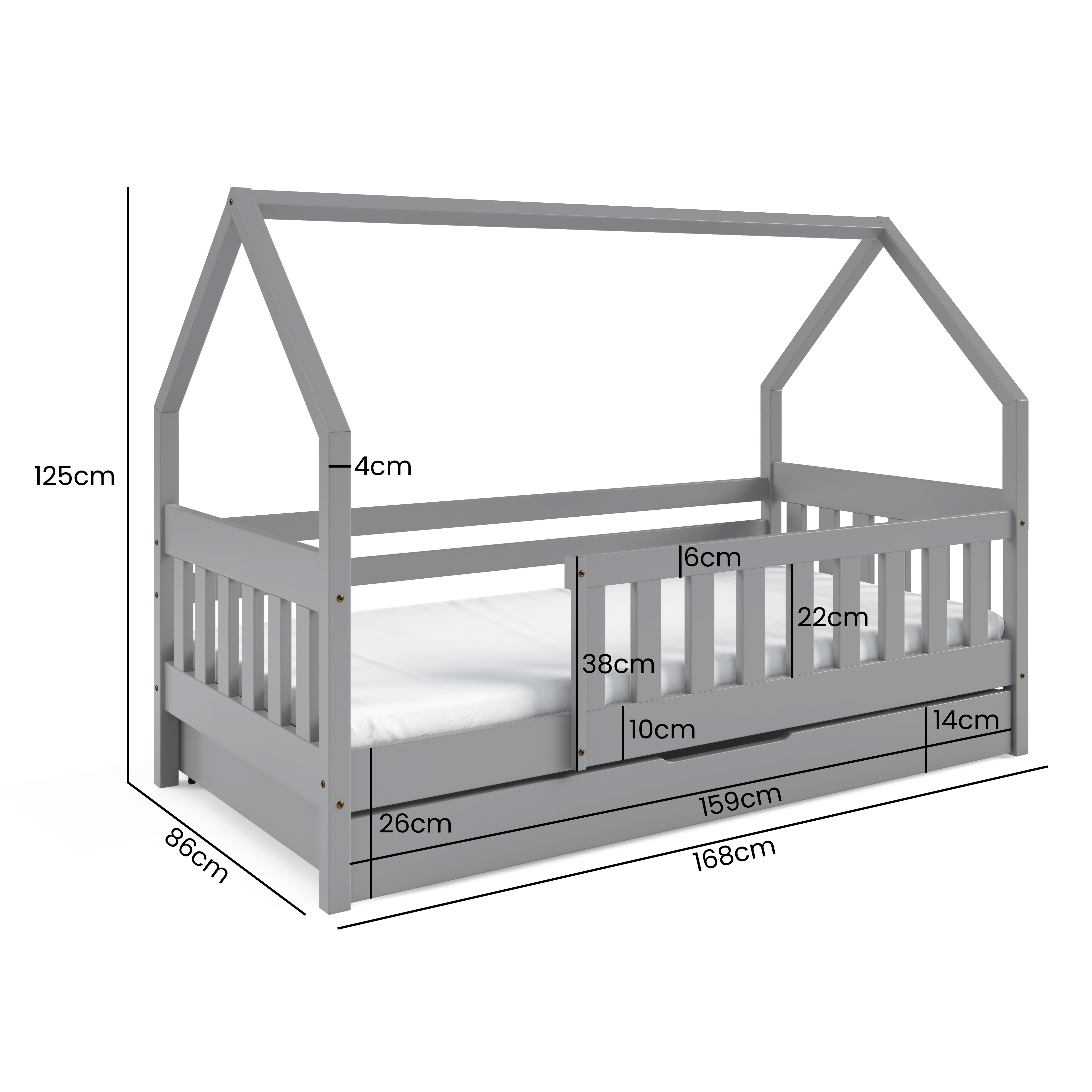 Eka Dětská dřevěná postel ve tvaru domečku JASMÍNA, 160 x 80 cm Šedá