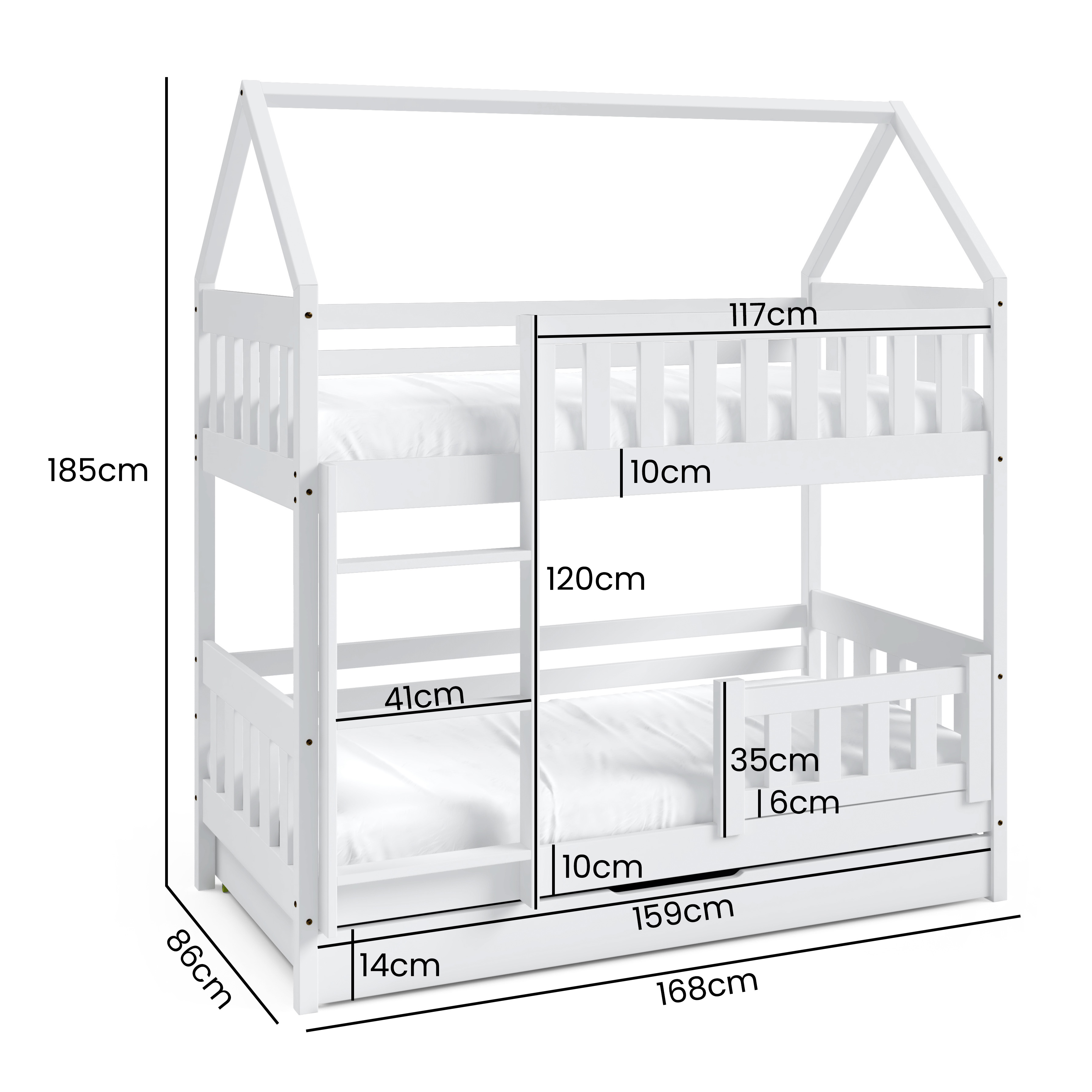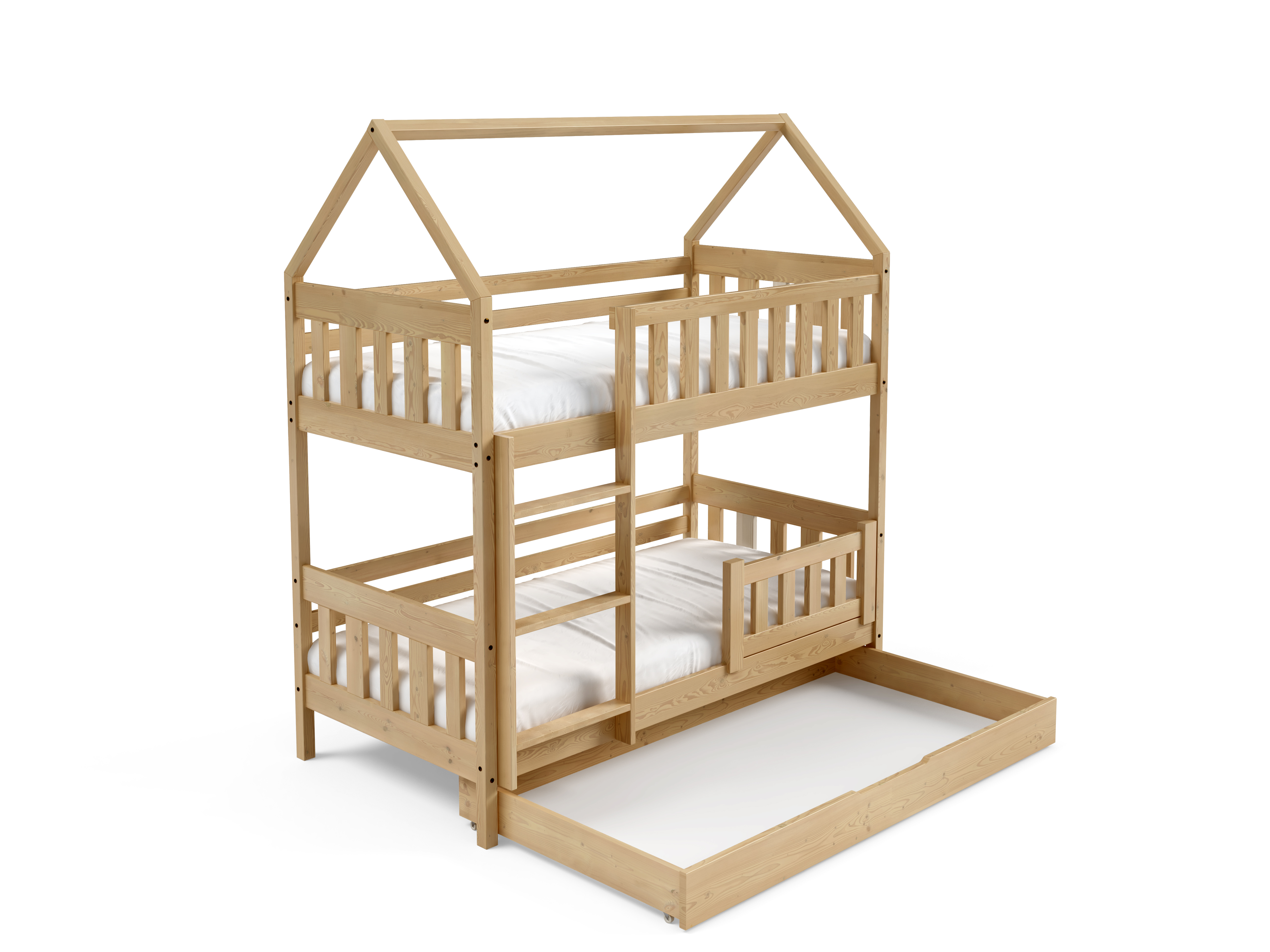 Proměňte dětský pokoj v místo plné fantazie s patrovou postelí CLAUDIE. Tento oblíbený design ve tvaru domečku je nejen krásným doplňkem interiéru, ale především zajišťuje bezpečí a pohodlí. Postel je vyrobena z kvalitního masivu borovice a ošetřena ekologickým certifikovaným lakem. Pevná konstrukce, ochranná zábrana a zaoblené hrany minimalizují riziko zranění. Přes den se postel stává ideálním místem pro hraní a odpočinek, v noci pak bezpečným útočištěm pro sladké sny. Domeček pro fantazii ️ Bezpečnost na prvním místě Kvalitní borovicový masiv ✨ Snadná údržba Rozměr pro matrace Nosnost 80 kg na lůžko Laťkový rošt v ceně ✅ Zaoblené hrany Jednoduchá montáž ✅ V balení najdete: Postel je dodávána v demontu k vlastní montáži. Balení neobsahuje matrace, šuplík, chrániče, lůžkoviny ani dekorace zobrazené na fotkách. Potřebujete poradit s výběrem? Jsme tu pro vás.Kouzelné království spánku a her