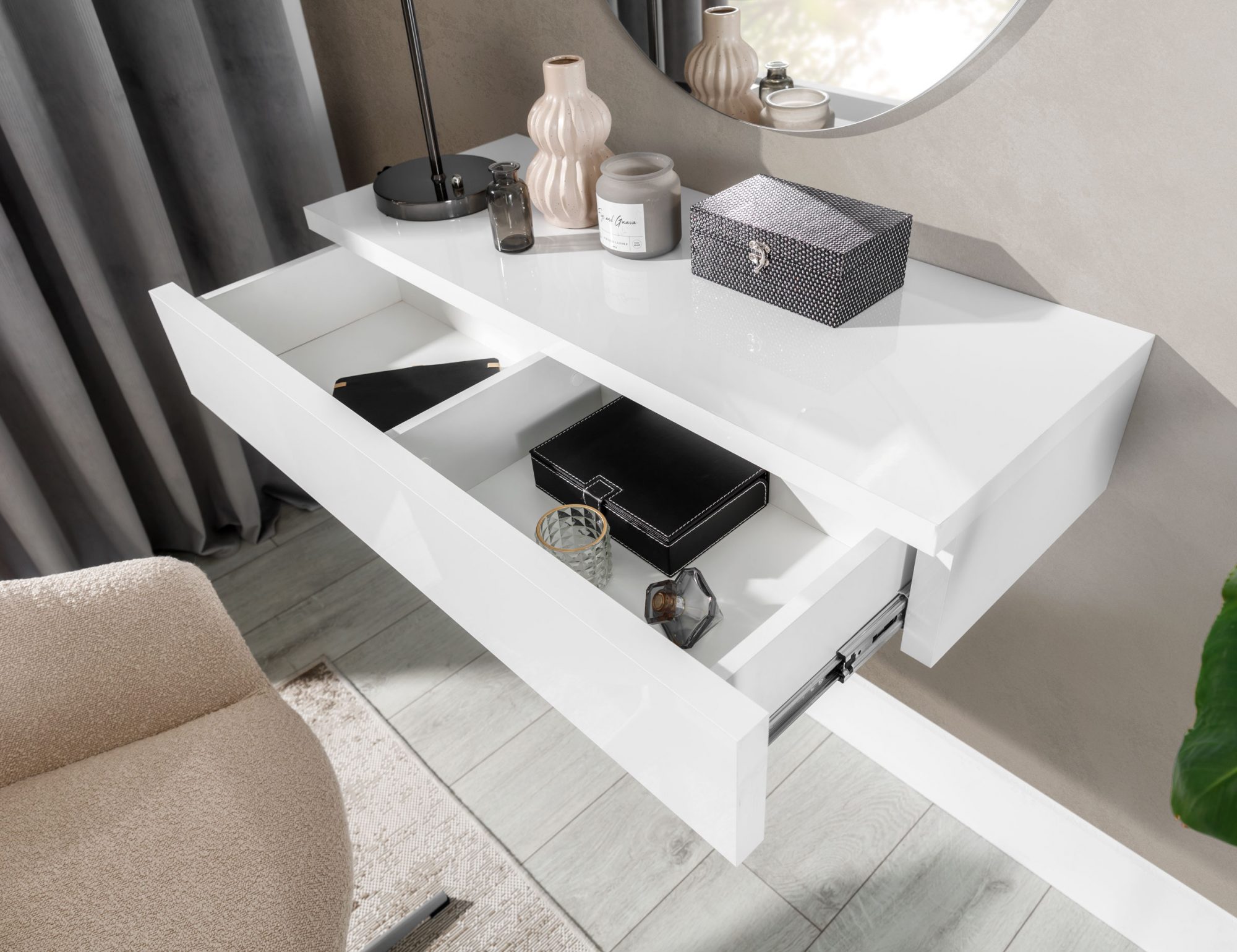 GAB Toaletní stolek NAVANO 100 cm, Bílý lesk