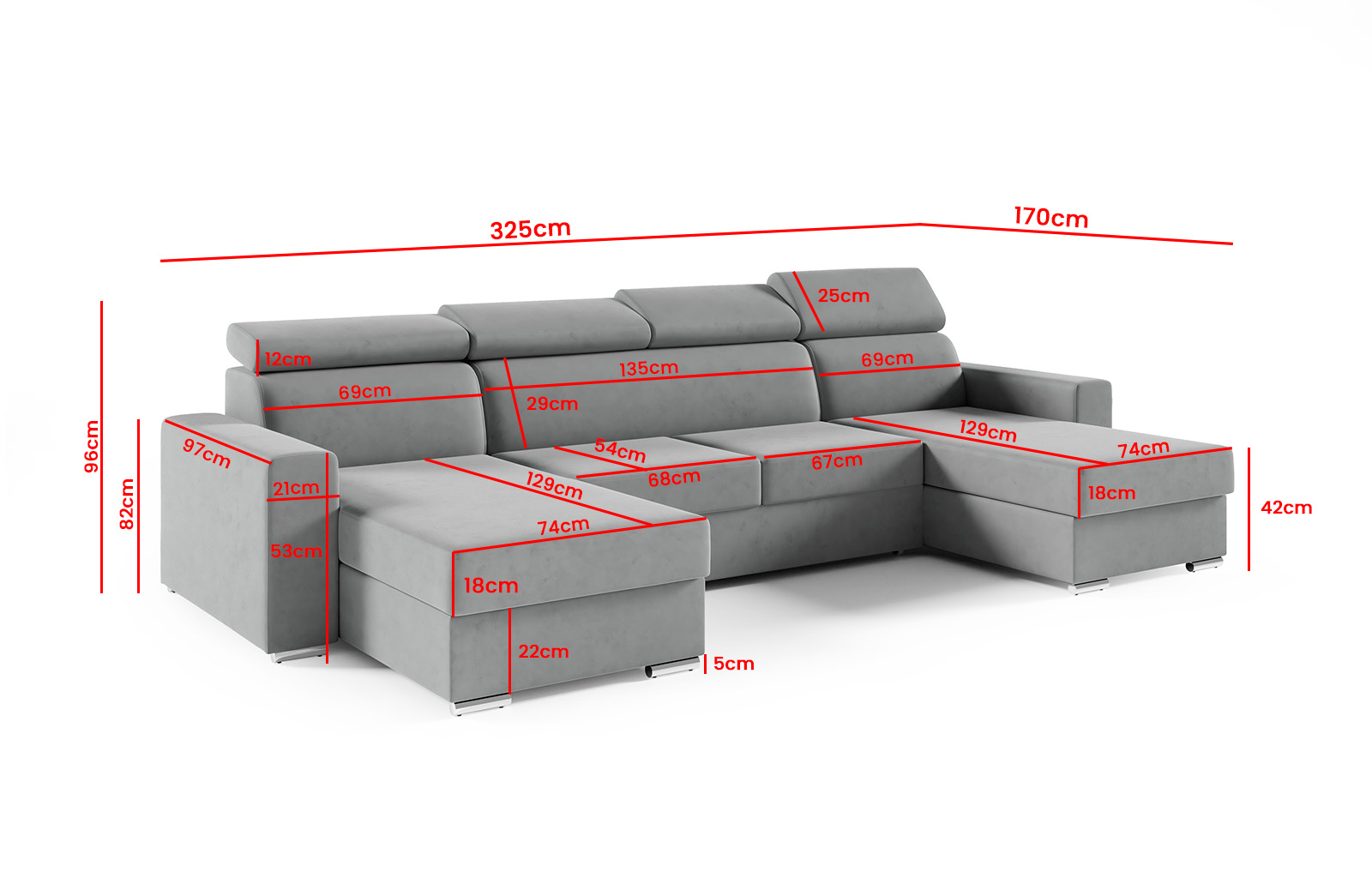 | Celková šířka | 325 cm |