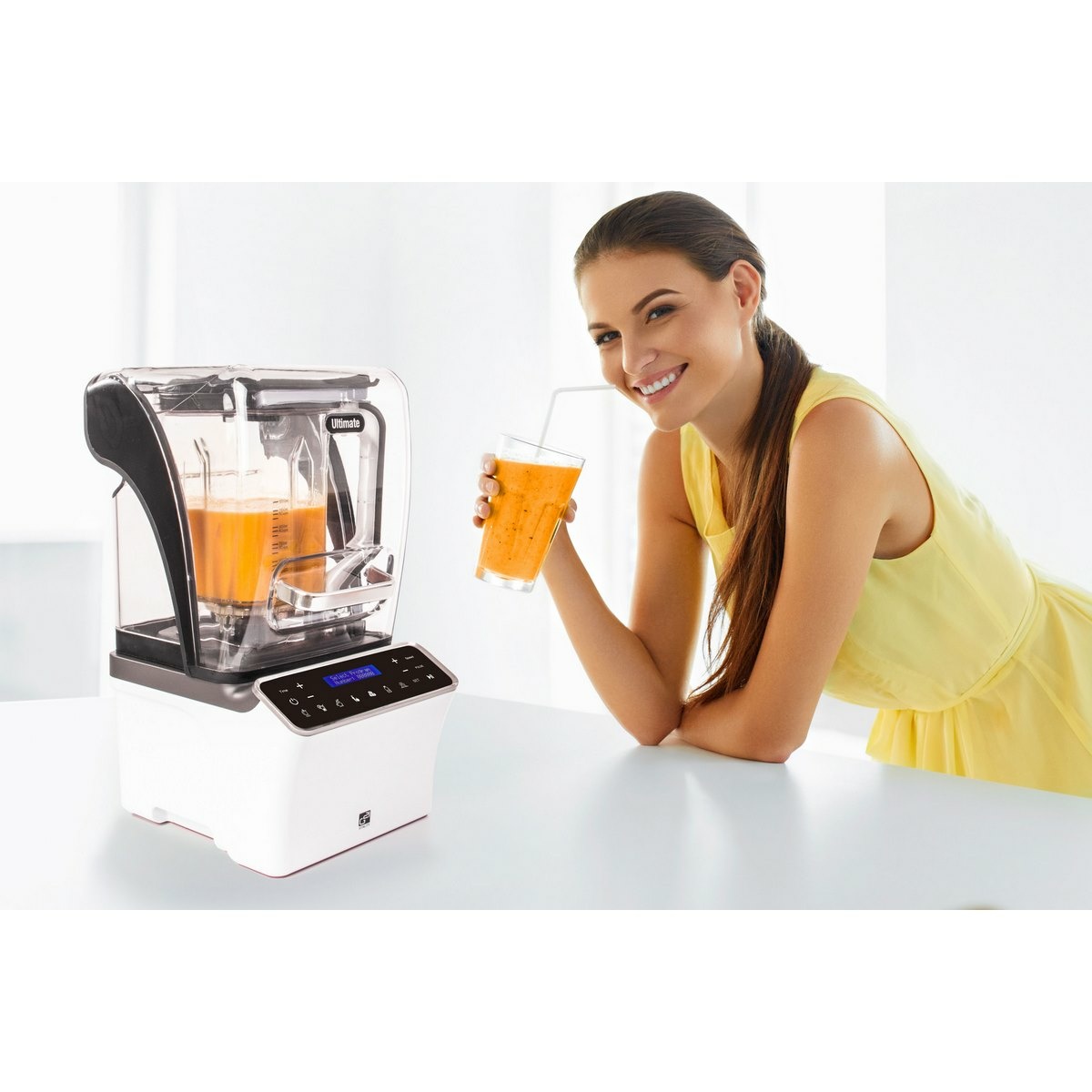 G21 Stolní mixér s krytem Ultimate White je špičkový blender určený pro maximálně kvalitní a zdravé mixování. Díky technologii mixování ve vakuu se do surovin nedostává vzduch, takže nevzniká oxidace a nemizí vitaminy ani čerstvá chuť. Nápoje i pokrmy si uchovají přirozenou barvu, svěžest a hladkou, homogenní konzistenci bez pěny a oddělených vrstev. Můžete je připravit i několik hodin dopředu – stále budou chutnat jako právě udělané.Velkou výhodou tohoto modelu je odhlučňovací kryt, který výrazně tlumí hluk při mixování a zároveň slouží jako bezpečnostní pojistka – mixér se spustí pouze tehdy, když je kryt správně uzavřený. Pohodlné dotykové ovládání a přehledný displej nabízí 6 přednastavených programů: smoothie, mléčný koktejl, ovocná/zeleninová šťáva, ořechové mléko, drcení ledu a mletí. Silný motor s výkonem 1 500 W a rychlost 28 000 otáček za minutu zajistí rychlou a rovnoměrnou přípravu všech běžných mixovaných pokrmů.Mixér má robustní konstrukci s kovovými převody a vylepšeným chlazením, díky čemuž dokáže odolat vysokému zatížení a zaručuje dlouhou životnost. Mixovací nádoba o objemu 1,2 l je vyrobena z odolného a zdravotně nezávadného Tritan Copolyesteru, který snese teploty od –20 do +90 °C. Elegantní bílé provedení působí moderně v domácí kuchyni, restauraci, kavárně i fitness provozu. Přístroj je určen pro tekuté a středně husté mixy – nikoli pro hutné směsi a ořechová másla, která vyžadují pěchovadlo.Parametry produktu výkon: 1 500 W otáčky: 28 000 / min objem nádoby: 1,2 l materiál nádoby: Tritan Copolyester teplotní odolnost nádoby: –20 až +90 °CObsah balení blender G21 Ultimate nádoba 1,2 l víko plastová stěrka dokumentace