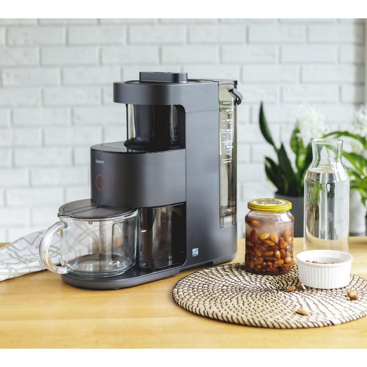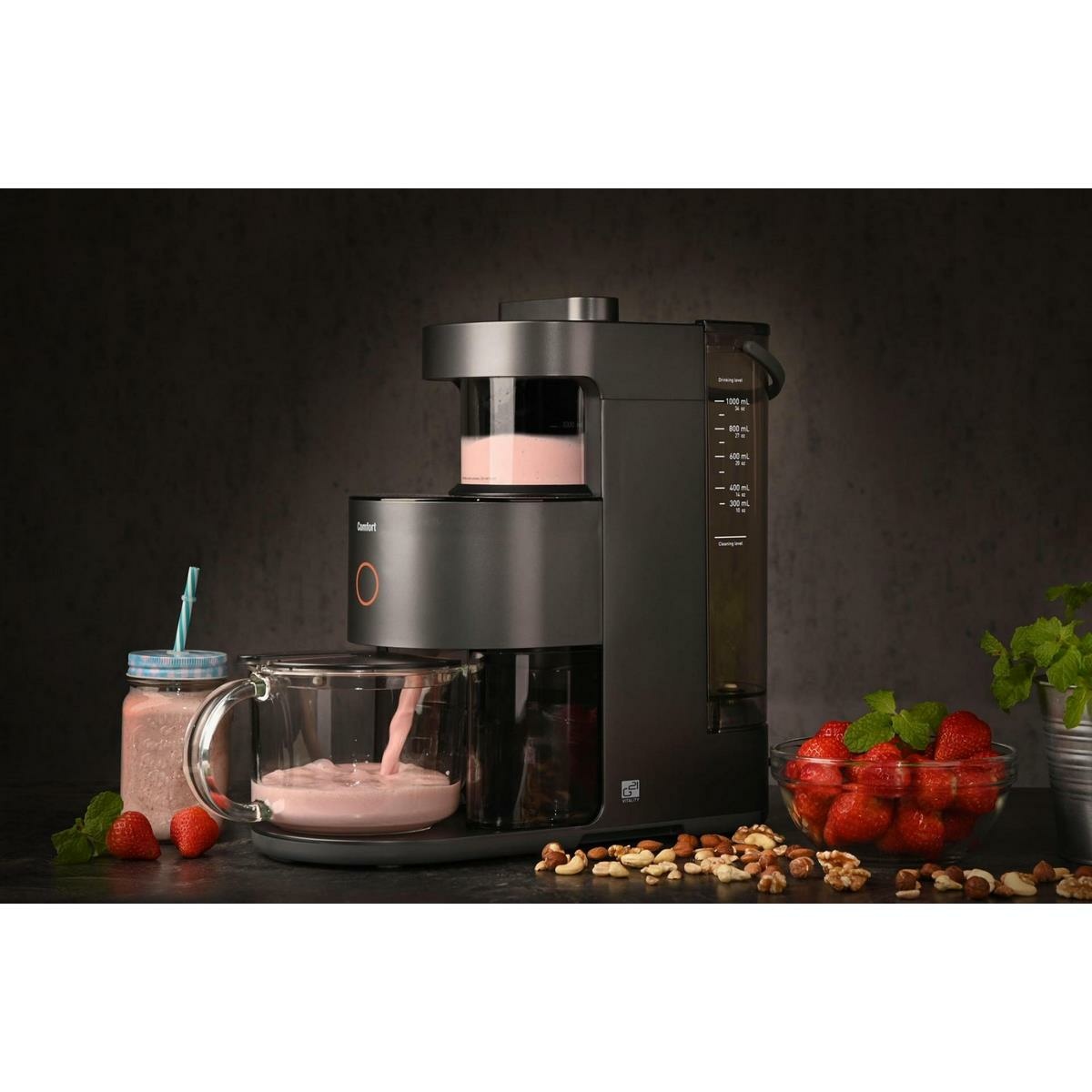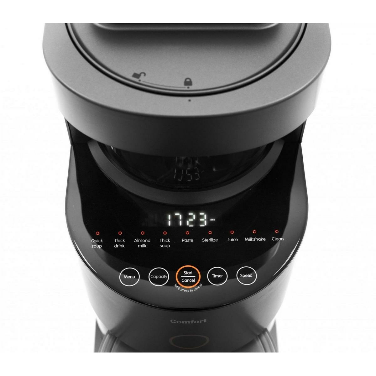 G21 Multifunkční mixér Comfort Graphite Black je moderní power blender, který dokáže nahradit hned několik kuchyňských spotřebičů. Mixuje, vaří, připravuje polévky, omáčky, smoothie, džusy, mandlové i další rostlinné mléko, a po dokončení práce se sám vyčistí a vysterilizuje, takže vám šetří čas i energii. Díky inteligentní konstrukci si z vestavěného zásobníku o objemu 1000 ml sám doplní vodu a poté automaticky spustí vybraný program. Ovládání je jednoduché – stačí jediné tlačítko.Mixér nabízí 9 přednastavených programů, které pokrývají kompletní přípravu jídel a nápojů: od rychlé polévky přes husté krémy, omáčky a horké nápoje až po studené džusy nebo nadýchané mléčné koktejly. Díky programu pro rostlinné mléko snadno vyrobí mandlové či sójové mléko, zatímco funkce pro husté polévky zajistí plnohodnotný oběd bez hlídání vaření. Díky kvalitní skleněné varné nádobě je příprava bezpečná a výsledné pokrmy si zachovávají plnou chuť.Nechybí ani chytré funkce, jako odložený start nebo možnost zvolit vlastní rychlost mixování. Po skončení programu se přístroj automaticky pustí do rychlého čištění a následně i sterilizace horkou párou, která zajistí hygienickou čistotu nádoby i vnitřních částí. Comfort se tak stane každodenním pomocníkem pro přípravu příkrmů, polévek, koktejlů, dipů i nápojů, aniž by vyžadoval složitou údržbu.Parametry produktu programy: 9 (polévky, omáčky, krémy, horké nápoje, rostlinné mléko, džus, mléčný koktejl, čištění, sterilizace) objem zásobníku vody: 1000 ml nádoba: skleněná, vhodná pro vaření funkce: odložený start, ruční nastavení rychlosti, samočištění, sterilizaceObsah balení Kartáček na čištění Odměrka o objemu 120 ml se stupnicí