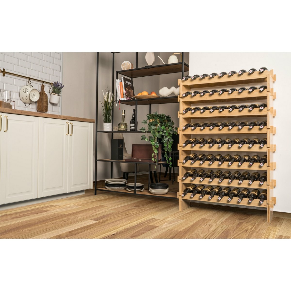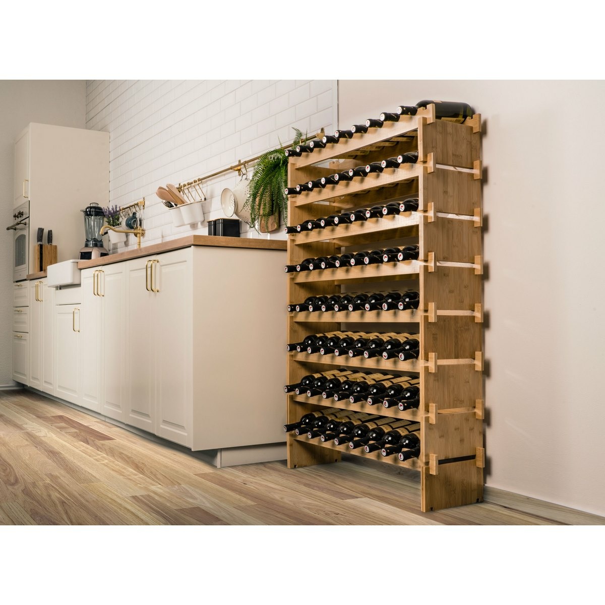 G21 Bambusový regál na víno, 72 lahví je elegantní a zároveň vysoce funkční řešení pro všechny, kteří chtějí mít svou sbírku vína uloženou bezpečně, přehledně a ve správné poloze. Precizně opracovaný bambus působí příjemně přírodním dojmem, ladí s moderními i klasickými interiéry a zároveň nabízí výborné vlastnosti – je pevný, lehký, odolný a stabilní.Stojan poskytuje kapacitu až 72 lahví, které jsou díky speciálním výřezům uložené bezpečně a bez rizika převrácení. Správná vodorovná poloha zabraňuje vysychání korků, což je zásadní pro kvalitu a životnost vín. Konstrukce je navržena tak, aby byly lahve dobře vidět, snadno dostupné a přehledně uspořádané.Velkou předností je variabilita sestavení – stojan můžete postavit jako jeden vysoký regál s osmi policemi nad sebou, nebo rozdělit na dva nižší samostatné stojany. Díky tomu jej snadno přizpůsobíte prostoru i požadavkům své sbírky.Bambusové dřevo dodává stojanu nejen elegantní vzhled, ale také dlouhou životnost a odolnost vůči běžným vlivům prostředí. Minimalistická konstrukce šetří místo a současně poskytuje bezpečné uložení každé lahve. Regál je tak praktickou volbou do domácích vinoték, kuchyní, spíží i společenských prostor.Specifikace Kapacita: 72 lahví Počet polic: 8 Nosnost jedné police: 10 kg Materiál: bambus Rozměry (š × h × v): 85 × 23,5 × 127,5 cm