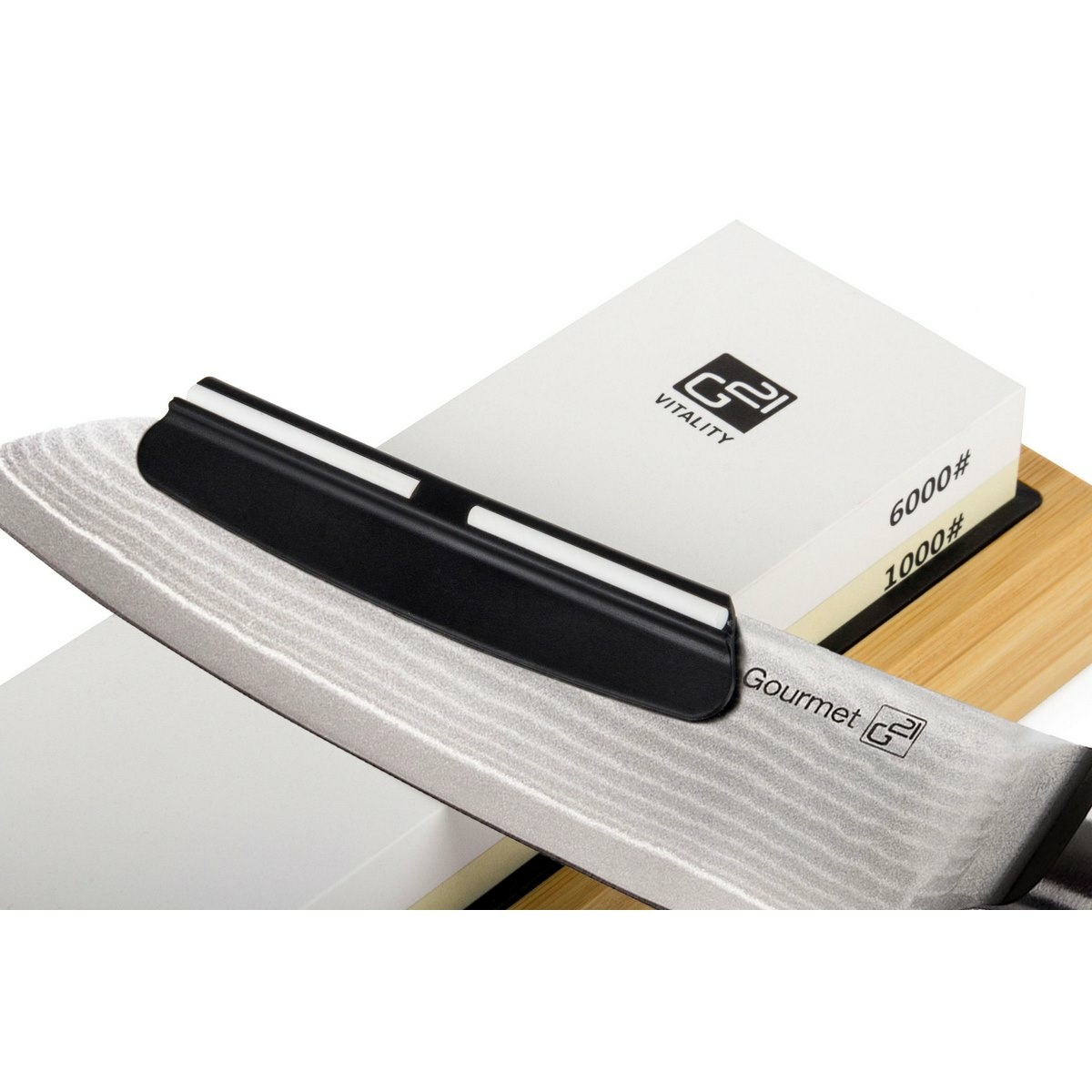 Sada nožů G21 Gourmet Damascus v bambusovém bloku 4 ks + brusný kámen