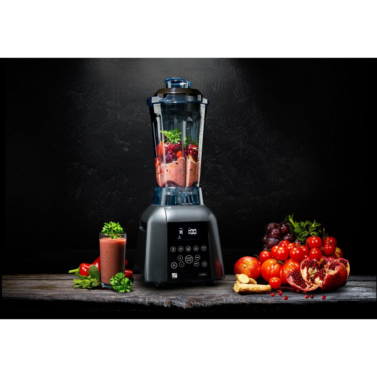 G21 Stolní mixér Excellent Graphite Black je mimořádně výkonný a chytrý blender určený pro domácí i profesionální kuchyně. Kombinuje extrémně silný výkon 1 700 W, až 32 000 otáček za minutu, digitální dotykové ovládání a možnost uložit vlastní mixovací programy, takže se snadno přizpůsobí vašemu stylu vaření. Díky kovovým převodům, speciálnímu brusu nožů a odolné 2,5l tritanové nádobě si poradí i s velmi tvrdými surovinami – od ořechových másel a hummusu přes smoothie, krémy až po husté polévky.K dispozici je 5 přednastavených programů a dalších 6 vlastních, které si můžete nastavit v jednotlivých krocích. Speciální režim Quick umožňuje okamžité mixování bez zdržování. Tvar nádoby je optimalizován pro dokonalé promísení ingrediencí, praktické pěchovadlo pomáhá posouvat suroviny ke dnu a ergonomická madla usnadňují manipulaci. Nádoba je vyrobena z BPA free Tritan Copolyesteru, je lehká, velmi odolná, zvládá teploty od –40 do +120 °C a můžete ji mýt v myčce. Odhlučněná motorová jednotka navíc zajišťuje tišší provoz i při vysokém výkonu.Parametry produktu výkon: 1 700 W otáčky: 32 000 / min objem nádoby: 2,5 l materiál nádoby: Tritan Copolyester (BPA free) teplotní odolnost nádoby: –40 až +120 °CObsah balení blender G21 Excellent nádoba 2,5 l víko + malé víčko plastová stěrka klíč na utažení nože pěchovadlo