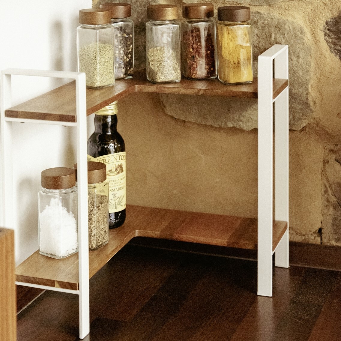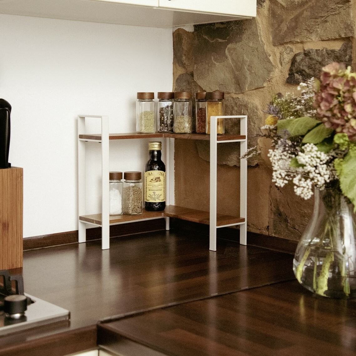 Wenko Kuchyňská rohová police z akácie Louisa, 2 patra, 30 × 30 × 33 cm