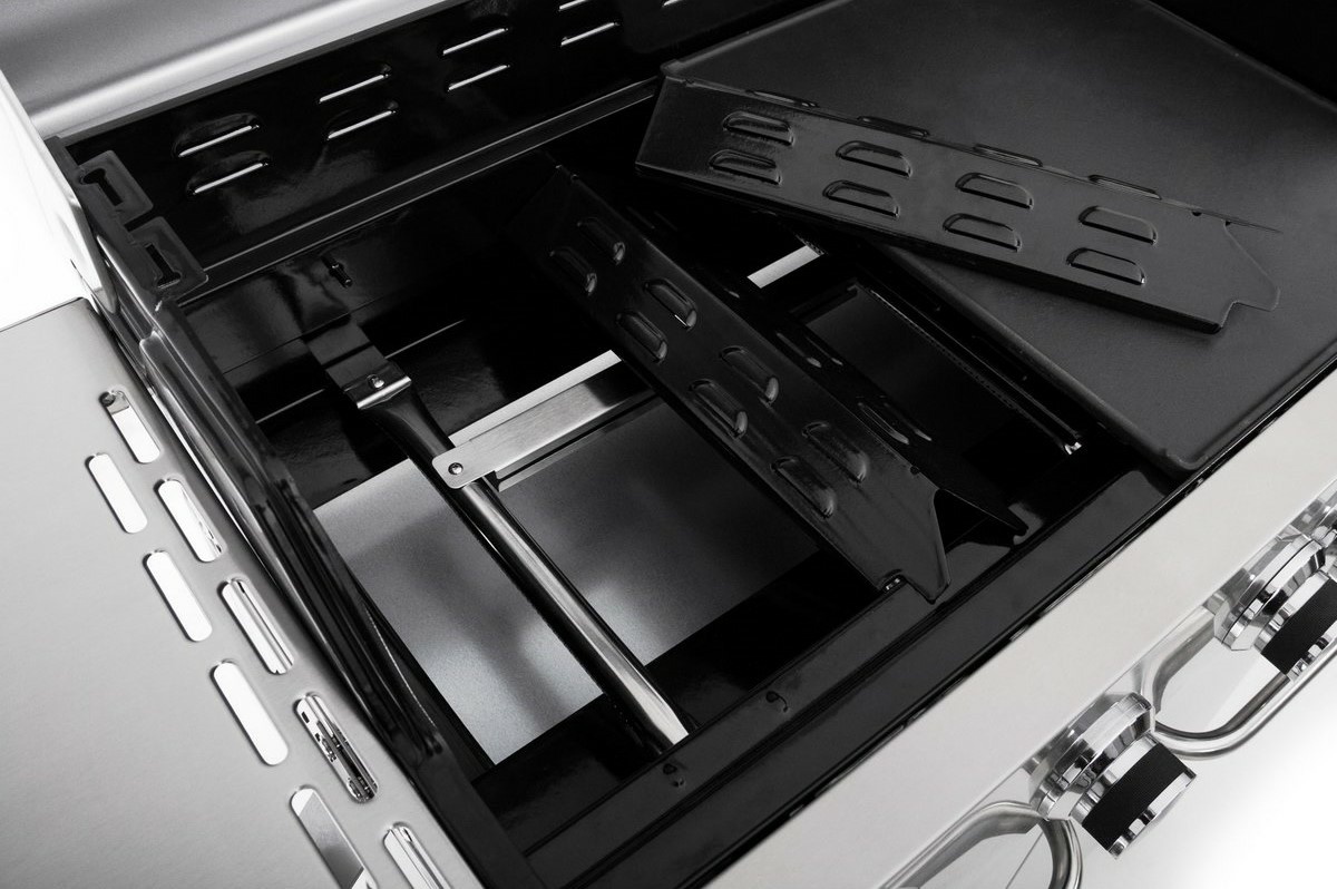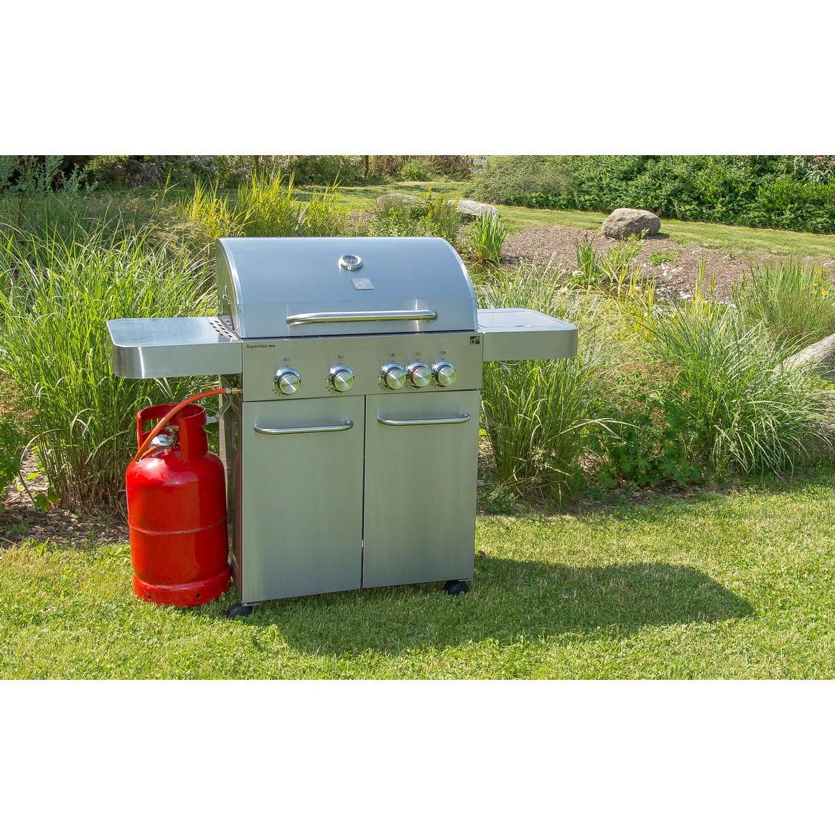 Příprava grilu na grilování je rychlá a snadná – pomocí redukčního ventilu, který je součástí balení, připojíte plynovou láhev a zapnete hořák. Pro pohodlné zapalování jsme gril vybavili bezpečným a rychlým pulzním zapalovacím systémem.Výkonné hořáky na grilování i vaření nebo smaženíPlynový gril G21 Argentina má nejen čtyři hlavní grilovací hořáky, ale také jeden hořák boční. Najdete jej pod krytem na jedné z bočních odkládacích ploch a využijete jej na smažení, vaření nebo například přípravu příloh na pánvi nebo k ohřevu.Už hotové grilované speciality můžete v teplém stavu udržovat i na nerezovém ohřívacím stojanu.Bezpečné a rychlé zapalováníAby byla příprava grilu na grilování co nejjednodušší a nejpohodlnější všechny hořáky jsou vybaveny rychlým pulzním zapalováním.Pulzní neboli piezzoelektrické zapalování je jednoduché praktické a bezpečné. Stiskem tlačítka k příslušnému hořáku se v piezokrystalu vytvoří napěťový impulz a vznikne jiskra, která následně zapálí puštěný plyn.Výhody litinového roštu a plátuGril G21 Argentina dostanete s litinovým roštem i litinovým plátem. Litina je vysoce odolná vůči vysokým teplotám a zároveň dokáže teplo déle akumulovat. Litinový povrch je méně přilnavý, než ostatní materiály používané k výrobě grilovacích roštů. Na litinových plátech a roštech se proto lépe griluje, snazší je také jejich čištění.Nerezový gril G21 Argentina je opatřen dvouvrstvým odklápěcím víkem pro zajištění optimální teploty při grilování. Teploměr, prakticky zabudovaný ve víku, vám dá přehled o aktuální teplotě pod víkem, takže se nemusíte bát spáleného nebo naopak nedopečeného masa.Kolečka s aretací, systém Flame Tamer a další přednostiPro snadný přesun je gril G21 Argentina vybaven čtveřicí koleček, které můžete na místě zaaretovat a zabránit tak případnému posunu grilu.Gril má také delší životnost hořáků díky chytrému systému Flame Tamer. Kovové profily, umístěné přímo nad hořáky, zabraňují odkapávání tuku mezi plameny a jeho vzplanutí. Zároveň zabraňují přímému ohřevu mřížky pouze v místě hořáku, takže se celá mřížka vyhřívá rovnoměrně.Parametry a specifikace určení: plynový gril hlavní hořák: 4x výkon hlavních hořáků: 3,5 kW boční hořák: 1x výkon bočního hořáku: 3,15 kW materiál: nerezová ocel materiál roštu: litina (slitina železa s uhlíkem)Rozměry grilovací plocha: 3 256 cm² rozměry grilovací plochy: 74 x 44 cm celkové rozměry: 134 x 116 x 56 cm