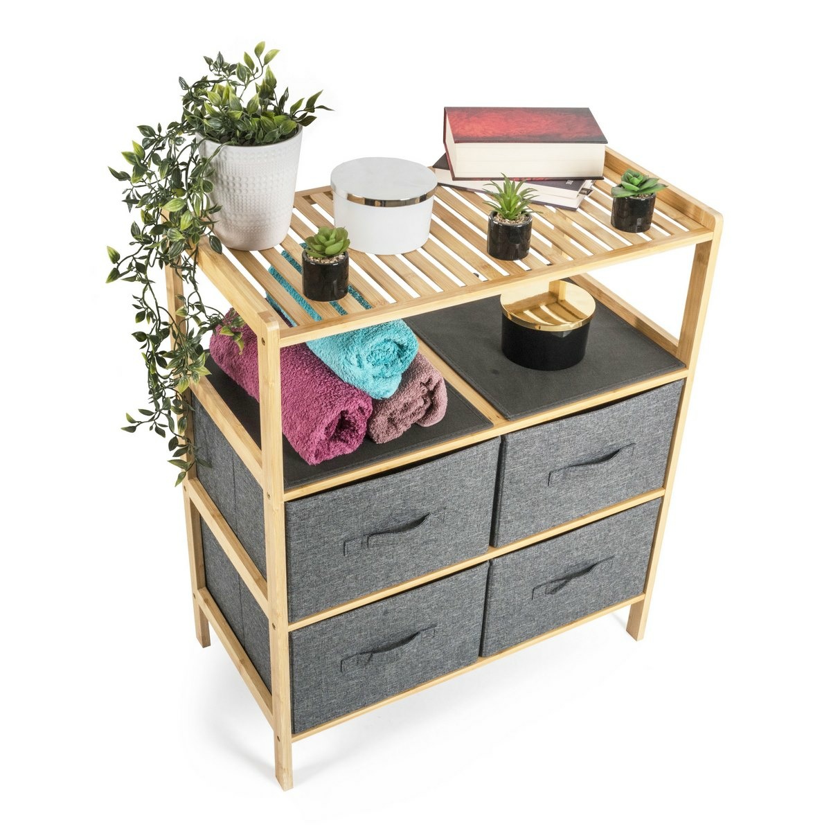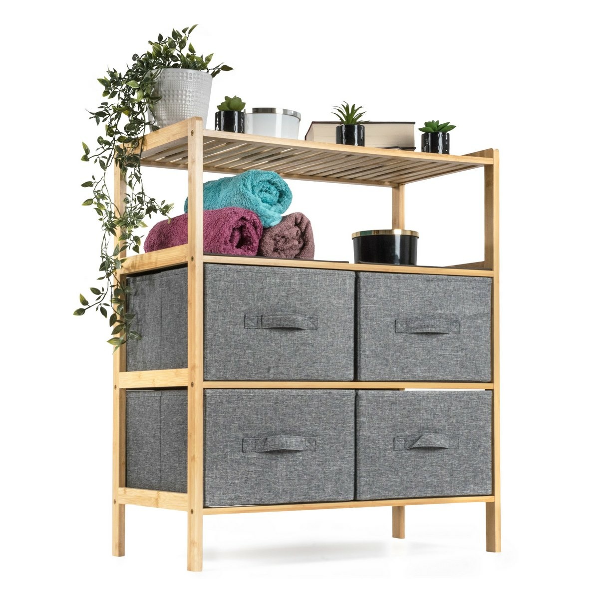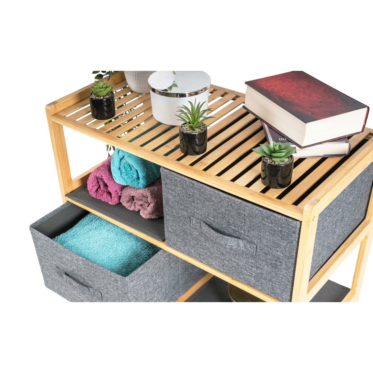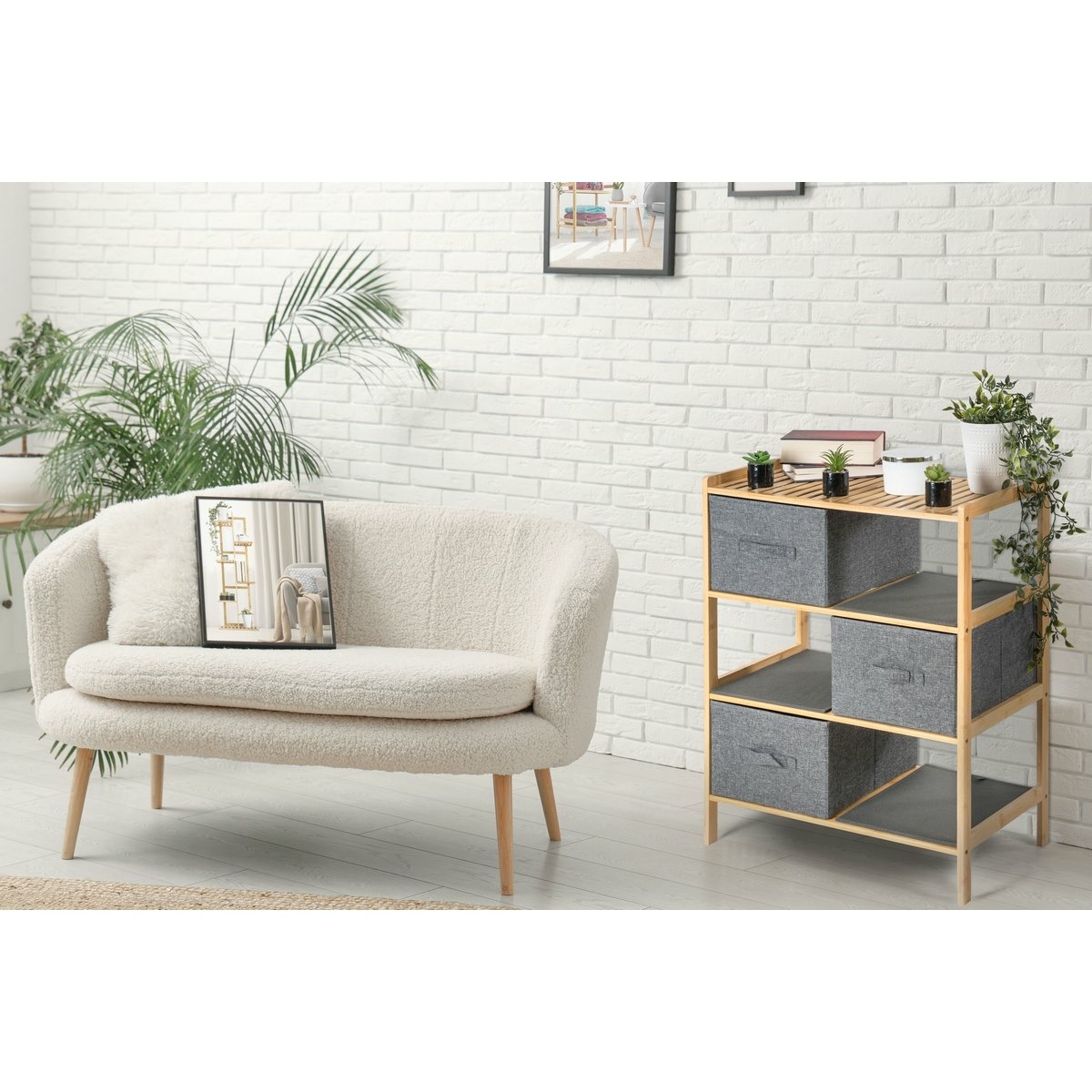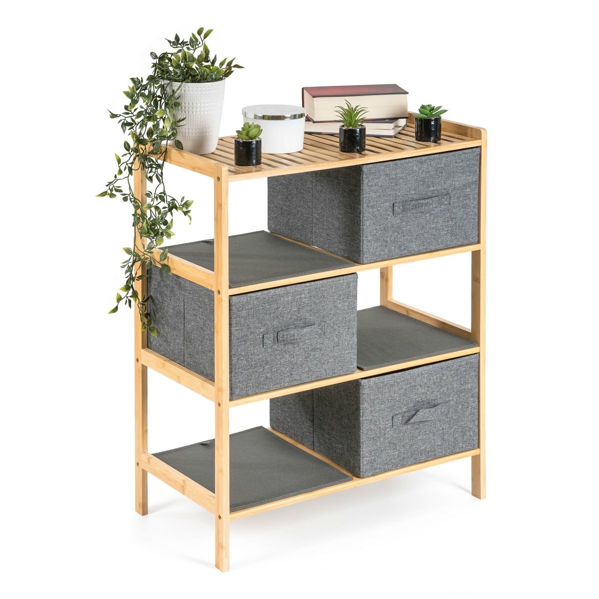 G21 Bambusový regál s košíky, 3 police, šedá, 3 patra