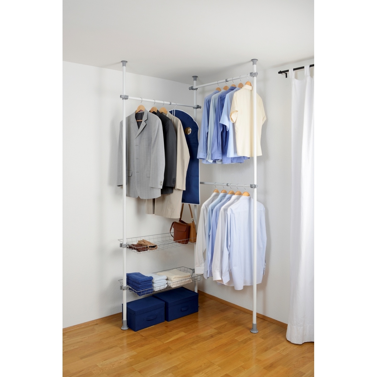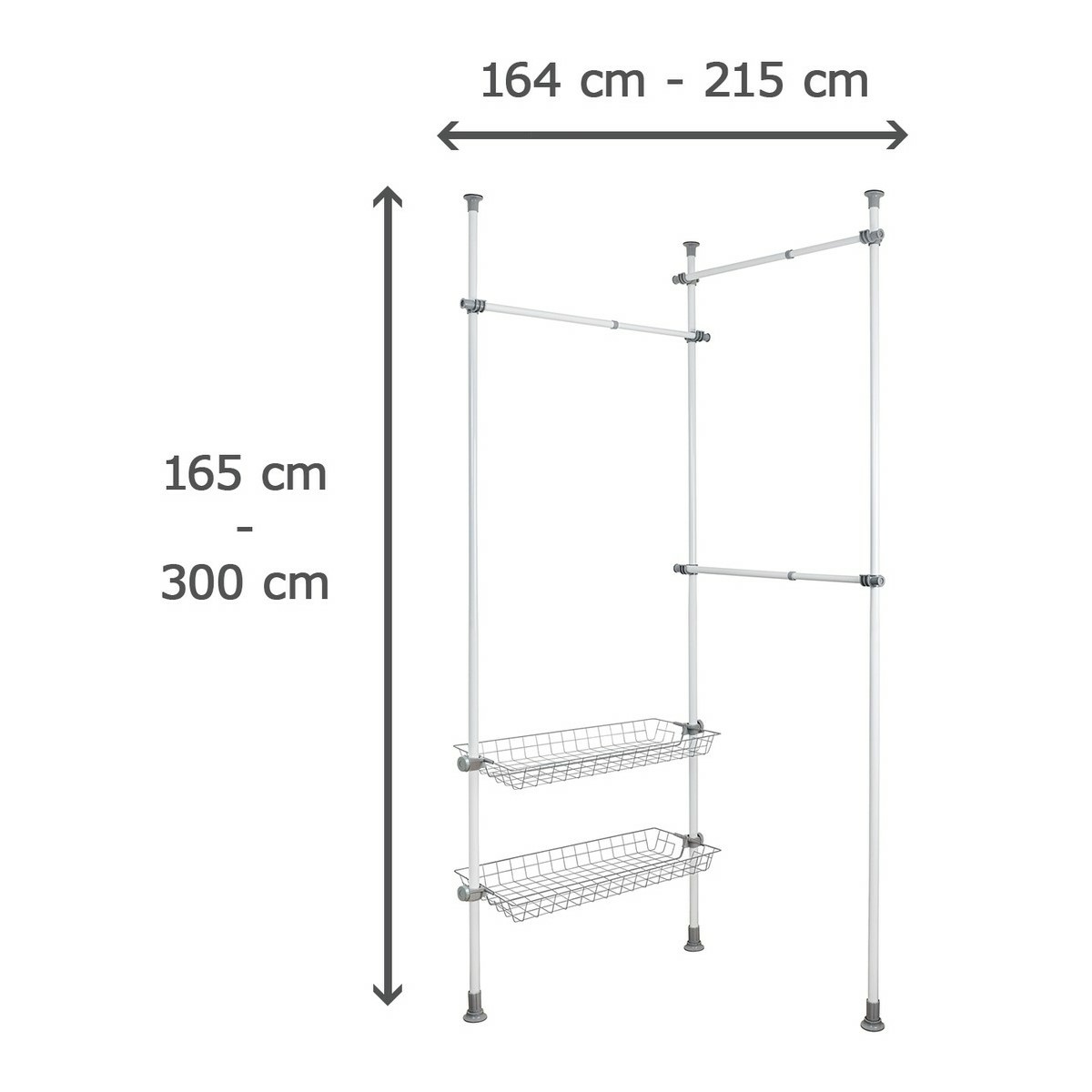 Teleskopické věšáky Herkules Duo od německé značky Wenko jsou ideálním řešením pro všechny, kdo si chtějí vytvořit praktickou a přehlednou šatnu přímo doma. Díky teleskopickým tyčím, které se jednoduše upevní mezi podlahu a strop, systém nevyžaduje žádné vrtání ani složitou montáž. Hodí se do ložnic, šaten, chodeb i menších bytů, kde nahradí klasickou šatní skříň a zároveň nabídne otevřený a vzdušný úložný prostor.Sestava nabízí tři šatní tyče s nosností až 20 kg každá a navíc dva drátěné koše s nosností 15 kg, které jsou ideální pro uložení doplňků, kabelek, šál nebo menšího prádla. Všechny prvky jsou nastavitelné, takže si je můžete přizpůsobit podle svých potřeb a velikosti místnosti. Výšku nosných tyčí lze měnit v rozmezí 165–300 cm, šířku pak přizpůsobit od 164 do 215 cm. Praktickým doplňkem je i šatní háček, který usnadní sundávání a zavěšování oblečení z vyšších částí systému.Systém Herkules je variabilní teleskopický úložný systém, který umožňuje vytvořit si osobní šatnu na míru téměř v každém interiéru. Základní verze nabízí šatní tyče pro přehledné uspořádání oblečení, rozšířené varianty přidávají drátěné koše, police či háčky, díky nimž lze pohodlně uložit i obuv, tašky, šátky nebo prádlo. Všechny prvky jsou výškově a šířkově nastavitelné a jejich kombinací si lze sestavit šatní systém přesně podle potřeby – ať už jde o otevřený šatník v ložnici, věšák v předsíni nebo úložný prostor v koupelně. Konstrukce je dostupná v bílé i černé barvě s industriálním nádechem a vyznačuje se vysokou nosností a stabilitou. Montáž vždy probíhá jednoduchým upnutím mezi podlahu a strop, bez vrtání a náročných zásahů do interiéru.Hlavní výhody produktu tři nastavitelné šatní tyče s nosností až 20 kg dva drátěné koše s nosností 15 kg pro doplňky plynule nastavitelná výška 165–300 cm a šířka 164–215 cm možnost instalace i do rohu pro úsporu prostoru snadná montáž bez vrtání, stabilní a odolná konstrukceObsah balení 3× vertikální tyč 3× horizontální tyč 2× drátěný košík montážní příslušenství (háčky, spojovací prvky)Parametry a specifikace materiál: kov s práškovým nástřikem, plastové spojky barva: bílá / šedé prvky výška 165–300 cm šířka 164–215 cm hloubka 38 cm nosnost: tyče 3× 20 kg, koše 2× 15 kg hmotnost: 7,308 kg montáž: upnutí mezi podlahu a strop, bez vrtání