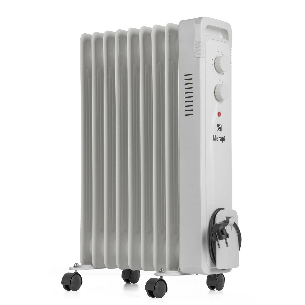 G21 Olejový radiátor Merapi, 9 žeber, 2000 W, bílá je spolehlivé, výkonné a tiché topidlo, které efektivně vyhřeje místnosti s nedostatečným nebo žádným vytápěním. Devět žeber zajišťuje rovnoměrné rozložení tepla a olejová náplň udržuje příjemné sálavé teplo dlouho po vypnutí. Radiátor je proto ideální na chatu, do ložnic, dětských pokojů i pracovny.Olejový radiátor Merapi pracuje tiše a úsporně. Pomocí termostatu si nastavíte požadovanou teplotu a přístroj se bude automaticky zapínat a vypínat podle aktuálních podmínek v místnosti. Udržuje tak stabilní teplotu a šetří energii.Pro bezpečnou manipulaci je vybaven pojezdovými kolečky a madly, která umožňují snadné přesouvání bez rizika popálení. Integrovaná pojistka proti převržení zajistí automatické vypnutí, pokud by radiátor spadl nebo se převrátil.Specifikace Počet žeber: 9 Výkon: 800 W / 1200 W / 2000 W Teplotní rozsah: 0–85 °C Barva: bílá Rozměry (s pojezdem): 24 × 62 × 38 cm
