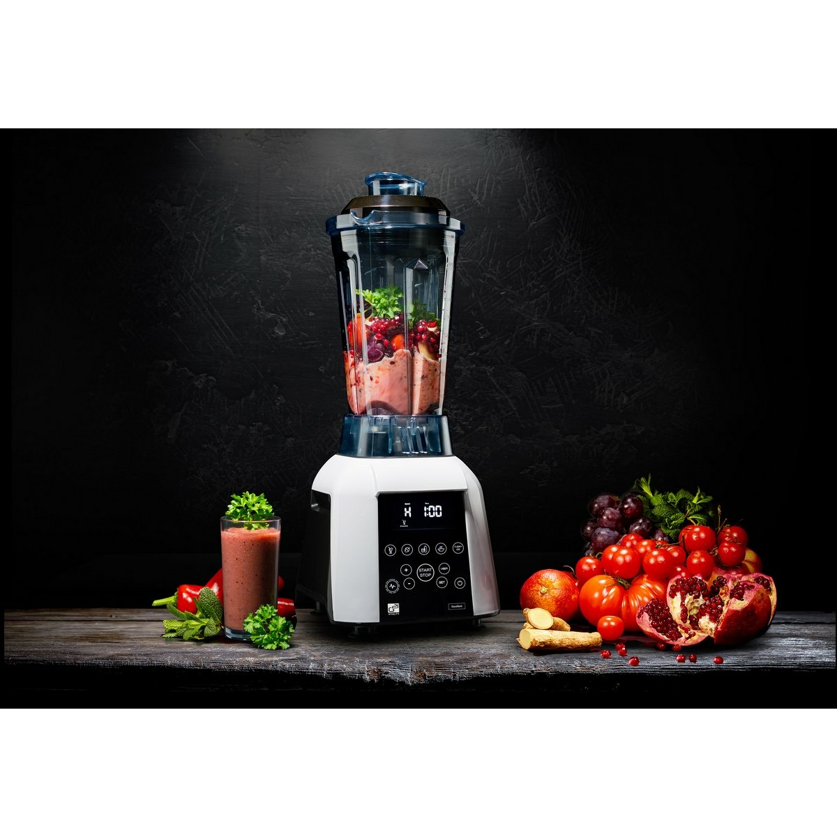 G21 Stolní mixér Excellent White je mimořádně výkonný a chytrý blender určený pro domácí i profesionální kuchyně. Spojuje extrémní výkon 1 700 W, až 32 000 otáček za minutu, moderní digitální dotykové ovládání a možnost uložit vlastní mixovací programy, díky čemuž se dokonale přizpůsobí vašim potřebám. Kovové převody, speciálně broušené nože a robustní 2,5l tritanová nádoba mu umožňují snadno zpracovat i velmi tvrdé suroviny – ořechová másla, hummus, kořenovou zeleninu, smoothie, krémy i husté polévky.K dispozici je 5 přednastavených programů a dalších 6 vlastních, které si můžete nastavit do posledního detailu. Režim Quick umožňuje okamžité mixování bez zdlouhavého nastavování. Tvar nádoby zaručuje perfektní cirkulaci surovin, pěchovadlo pomáhá posunout směs ke dnu a dvojice ergonomických madel usnadňuje manipulaci. Tritanová nádoba je BPA free, odolná, lehká, zvládá teploty od –40 do +120 °C a můžete ji mýt v myčce. Odhlučněná motorová jednotka zase snižuje hlučnost při plném výkonu.Parametry produktu výkon: 1 700 W otáčky: 32 000 / min objem nádoby: 2,5 l materiál nádoby: Tritan Copolyester (BPA free) teplotní odolnost nádoby: –40 až +120 °CObsah balení blender G21 Excellent nádoba 2,5 l víko + malé víčko plastová stěrka klíč na utažení nože pěchovadlo