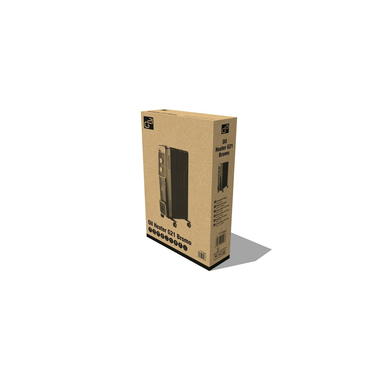 G21 Olejový radiátor Bromo, 9 žeber, 2000 W, černá je spolehlivý a tichý pomocník pro vytápění i přitápění v domácnosti, na chatě nebo v místech, kde chybí centrální topení. Díky devíti žeberům, vysokému výkonu a efektivnímu šíření tepla rychle a rovnoměrně vyhřeje menší i středně velké místnosti, přičemž si udržuje velmi tichý chod.Olejový radiátor Bromo pracuje úsporně – po nastavení teploty pomocí termostatu se automaticky zapíná a vypíná podle aktuální teploty v prostoru. Tím udržuje stabilní klima a šetří energii. Díky akumulaci tepla sálá příjemné teplo ještě dlouhou dobu po vypnutí.Pro bezpečné používání je radiátor vybaven pojistkou proti převržení, ochranou proti přehřátí a pojezdovými kolečky s madly pro snadné přesouvání. Jeho kompaktní rozměry umožňují snadné uložení, když ho zrovna nepotřebujete.Specifikace Počet žeber: 9 Výkon: 800 W / 1200 W / 2000 W Teplotní rozsah: 0–85 °C Barva: černá Rozměry (s pojezdem): 24 × 64 × 39 cm
