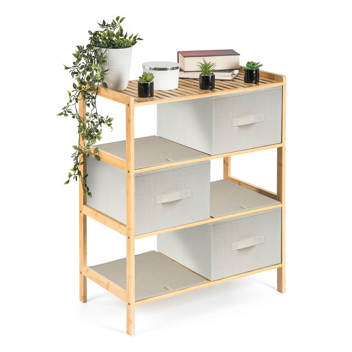 G21 Bambusový regál s košíky, 3 police, béžová, 3 patra