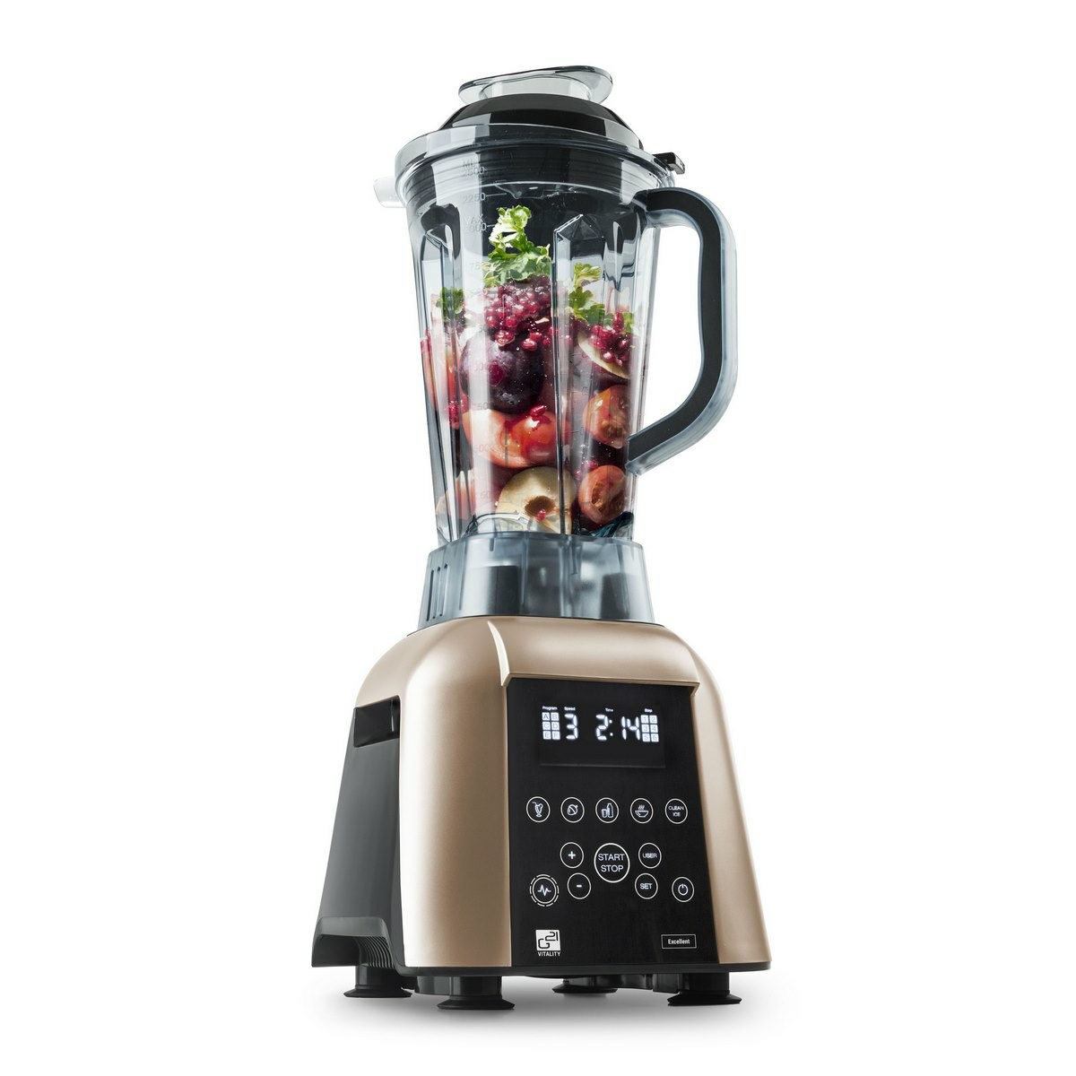 G21 Stolní mixér Excellent Cappuccino je mimořádně výkonný a chytrý blender určený pro domácí i profesionální kuchyně. Kombinuje extrémně silný výkon 1 700 W, až 32 000 otáček za minutu, digitální dotykové ovládání a možnost uložit vlastní mixovací programy, takže se dokonale přizpůsobí vašemu stylu vaření. Díky kovovým převodům, speciálnímu brusu nožů a odolné 2,5l tritanové nádobě si poradí i s velmi tvrdými surovinami – zvládne ořechová másla, hummus, smoothie, polévky i jemné krémy.Vedle 5 přednastavených programů nabízí také 6 vlastních programů, které si můžete snadno nastavit podle potřeby. Speciální režim Quick umožňuje rychlé spuštění mixování bez zbytečného nastavování. Optimální tvar nádoby spolu s pěchovadlem zajišťují dokonalé promísení surovin, ergonomicky tvarovaná madla pak usnadňují manipulaci. Nádoba je BPA free, vysoce odolná proti nárazu i teplotám od –40 do +120 °C a lze ji mýt v myčce. Odhlučněná motorová jednotka zajišťuje tišší provoz i při maximálním výkonu.Parametry produktu výkon: 1 700 W otáčky: 32 000 / min objem nádoby: 2,5 l materiál nádoby: Tritan Copolyester (BPA free) teplotní odolnost nádoby: –40 až +120 °CObsah balení blender G21 Excellent nádoba 2,5 l víko + malé víčko plastová stěrka klíč na utažení nože pěchovadlo