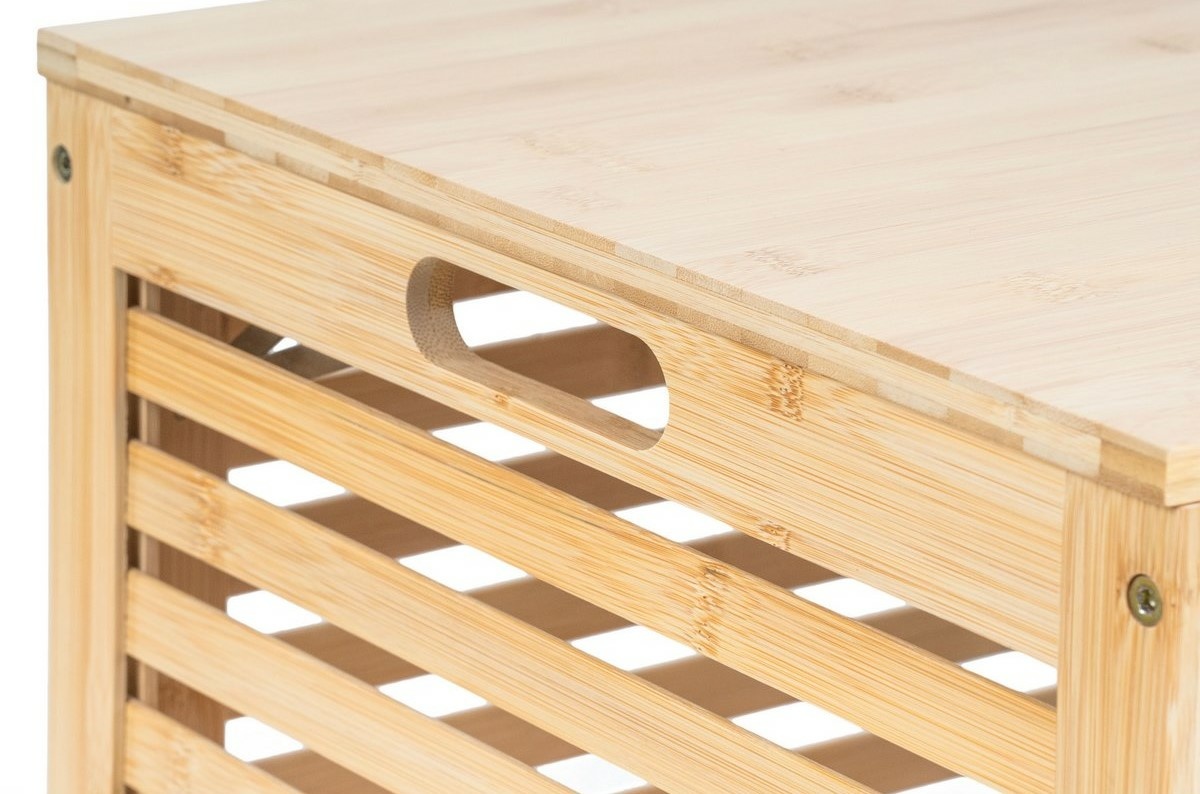 Stylový úložný bambusový box G21 nabízí nejen dostatek úložného prostoru, ale zároveň může sloužit i jako pohodlná sedací lavice. Oceníte jej kdekoliv, kde potřebujete efektivně využít prostor.Kde bambusový úložný box využijete?Tento bambusový box je skvělým doplňkem do ložnice, dětského i obývacího pokoje nebo předsíně. Nabízí úložný prostor o vnitřní nosnosti 10 kg pro uložení dek, polštářů nebo sezónního oblečení, děti do něj mohou uklízet oblíbené hračky, v předsíni zas uschová sezónní doplňky, deštníky a podobně.Díky pevné konstrukci a nosnosti víka až 80 kg jej můžete využít i jako sedací lavici, takže v jedné koupi získáte praktický a přitom hezký kousek nábytku.Přírodní krása a eleganceBambusová lavice s úložným prostorem dodává interiéru příjemný přírodní dojem, pocit lehkosti a přirozenosti, zatímco její pevnost a dlouhá životnost zajišťují stabilitu a trvanlivost. Velkou předností je i provedení, dodávající přirozenou vzdušnost.Jemné a teplé barvy oživí a vkusně doplní jakýkoliv prostor bez ohledu na jeho styl – skvěle ladí s rustikálním i moderním nebo minimalistickým interiérem.Lehkost, pevnost, odolnostBambus je překvapivě lehký, takže s boxem můžete snadno manipulovat. Zároveň je ale dostatečně pevný, takže unese i větší zátěž. Jednou z výborných vlastností bambusového dřeva je navíc jeho velká odolnost vůči vlhkosti a přirozená odolnost vůči bakteriím a plísním, takže se nemusíte obávat jeho umístění v koupelně nebo prádelně. Hlavní výhody produktu víceúčelové využití – úložný box a sedací lavice v jednom nosnost víka 80 kg, kovové panty pro snadné zvedání bambus je stylový přírodní a ekologický materiál s dlouhou životností kompaktní, ale zároveň prostorné úložné řešeníParametry a specifikace objem: 137 l nosnost víka: 80 kg max. zatížení úložného prostoru: 10 kg materiál: bambus rozměry: 76 x 40 x 45 cm