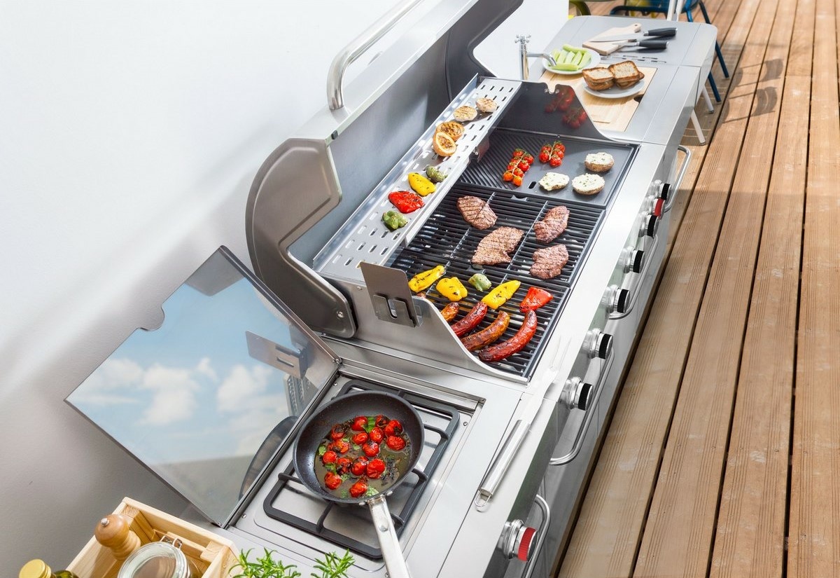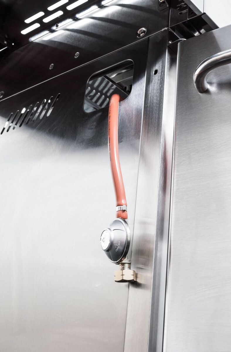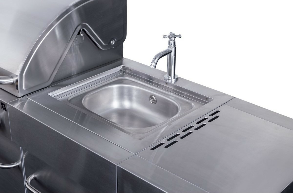 Plynový gril s 6 základními hořáky, 1 bočním + 1 Infra Red hořákem. Grilovací kuchyně Nevada má 8 hořáků, vestavěný dřez s víkem/krájecím prkénkem a velkou pracovní plochu, chytře řešené odkládací prostory, vestavěný teploměr ve víku, systém Flame Tamer.Grilovací kuchyně G21 Nevada s vestavěným dřezem, obrovskou pracovní plochou a chytře řešenými odkládacími prostorami je odpovědí na přání všech šéfkuchařů i milovníků grilování. Vše na jednom místě – můžete zároveň grilovat, na bočním hořáku dusit přílohovou zeleninu a použité nádobí hned oplachovat ve vestavném dřezu, bez nutnosti přenášet grilovací vybavení neustále do domu a zpět.Grilovací kuchyně Nevada je výborným řešením i pro komerční prostory – restaurace s letní terasou nebo zahrádkou, hotely, ubytovací zařízení, kempy a další vyhledávaná místa, kde standardní grily nestačí pokrýt zájem všech milovníků grilovaných specialit.Výčet výhod zdaleka nekončíCo nesmí chybět v žádné kuchyni? Přeci dřez. A ten nechybí ani u grilu G21 BBQ Nevada Premium line. Vestavný dřez má i přívod na vodu ze zahradní hadice. A po opláchnutí nádobí dřez jen zakryjte prkénkem a rázem získáte větší pracovní plochu k přípravě pochoutek na letní grilování.Úložné prostory s dvířkyPod hořáky a dřezem jsou vestavěné skříňky s dvířky pro ochranu uložených věcí před počasím nebo prachem. Uskladněte zde grilovací náčiní i nádobí nebo plynovou bombu ve dnech, kdy gril nepoužíváte.Hořák Infra Red Keramický Infra-Red hořák se zahřeje rychleji a má vyšší výhřevnost než klasické spodní hořáky. Díky tomu se opékané maso rychleji “zatáhne” a vytvoří ochrannou křupavou kůrku, takže všechna šťáva zůstane uvnitř a maso se nevysušuje. Keramický hořák doplňuje výčet výhod vynikajícího grilu G21 BBQ Nevada. Díky jeho schopnosti zvýšit teplotu až na 250 - 300° C jej můžete využít k vaření i grilování. Umístění hořáku zaručuje zdravou úpravu pokrmů a na hořáku se nepřipaluje ani tuk nebo šťávy. Na keramickém hořáku můžete ugrilovat vynikající steak nebo celé kuře. Hořák je totiž výborný i pro grilování na grilovací jehle.Grily G21 mají Infra-Red hořák umístěný na zadní straně. Teplo tak proudí horizontálně a na hořák nekape omastek z pečení. Pokud se chystáte na delší grilování, například kuřat vcelku, využijete jej naplno a stane se nepostradatelným. Výborný je i na minutky nebo steaky.Systém Flame TamerPřímo nad hořáky je umístěn kovový profil, který zabraňuje odkapávání tuku mezi plameny a jeho vzplanutí. Zároveň zabraňuje přímému ohřevu mřížky pouze v místě hořáku, nedochází tak k přehřívání pouze jedné části mřížky, ale celá mřížka se vyhřívá rovnoměrně. Případný tuk skapávající z grilovaného masa stéká po speciální stříšce Flame Tamer do odkapávací misky ve spodní části grilu, což prodlužuje životnost hořáků.Hlavní výhody produktu 6 hlavních hořáků + 1 boční + 1 Infra Red vestavěný dřez s víkem 2 v 1 – víko a krájecí prkénko systém Flame Tamer litinový rošt + litinový plát piezzo elektrické zapalování elektrická grilovací jehla je součástí balení plynová regulace, teploměr ve víkuParametry a specifikace typ grilu: plynový počet hořáků: 8 hořáky: 6x spodní, 1x boční, 1x infra-red materiál konstrukce: nerezový ocelový plech materiál grilovacího roštu: litina materiál grilovacího plátu: litina rozměry grilovací plochy (Š x H): 97 x 50 cm rozměry grilu (Š x V x H): 302 x 121 x 62 cm hmotnost grilu: 125 kgVýkon hlavní hořáky: 6x 4 KW boční hořák: 4 KW infra Red: 4 KWObsah balení 1x plynový gril G21 Nevada BBQ kuchyně 1x redukční ventil s hadicí 1x jehla 2x litinový rošt 1x litinový plát