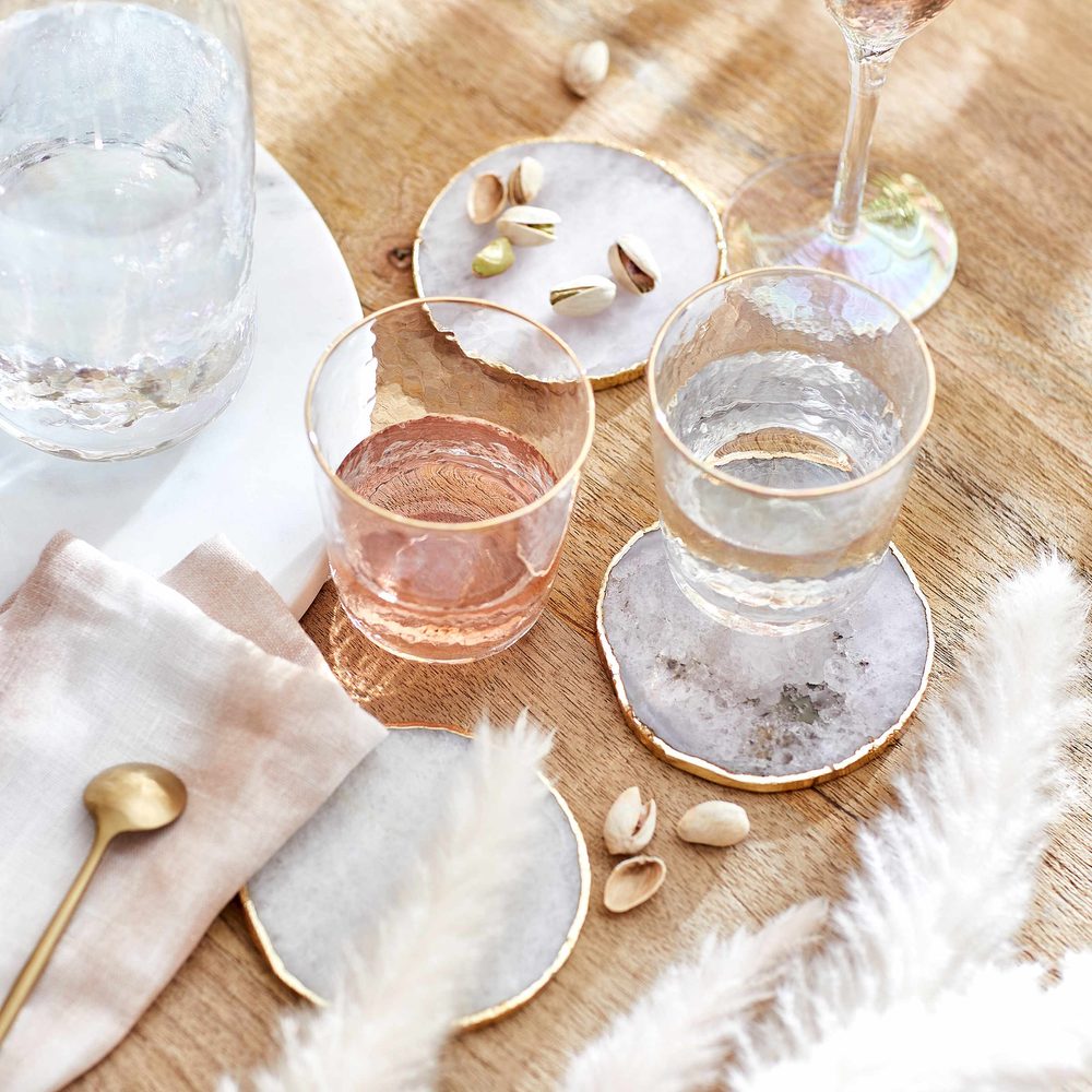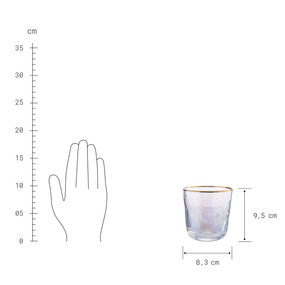 v balení 6 ks není vhodné do myčky nádobí není vhodné do mikrovlnné trouby Sklenice v setu po 6 ks se zlatým okrajem SMERALDA v něžném perleťovém odstínu září jako ústřičná perla a vzbudí ve Vás touhu po moři s písečné pláži. Ale i doma o prázdninách si tuto průzračnou sklenici s lehce strukturovaným povrchem určitě užijete. V kombinaci s typickými přímořskými doplňky jako jsou mušle, dekorační ryby a nápadité nádobí si středomořskou atmosféru vychutnáte i v teple domova. Přidejte vhodné sklenice na víno a…