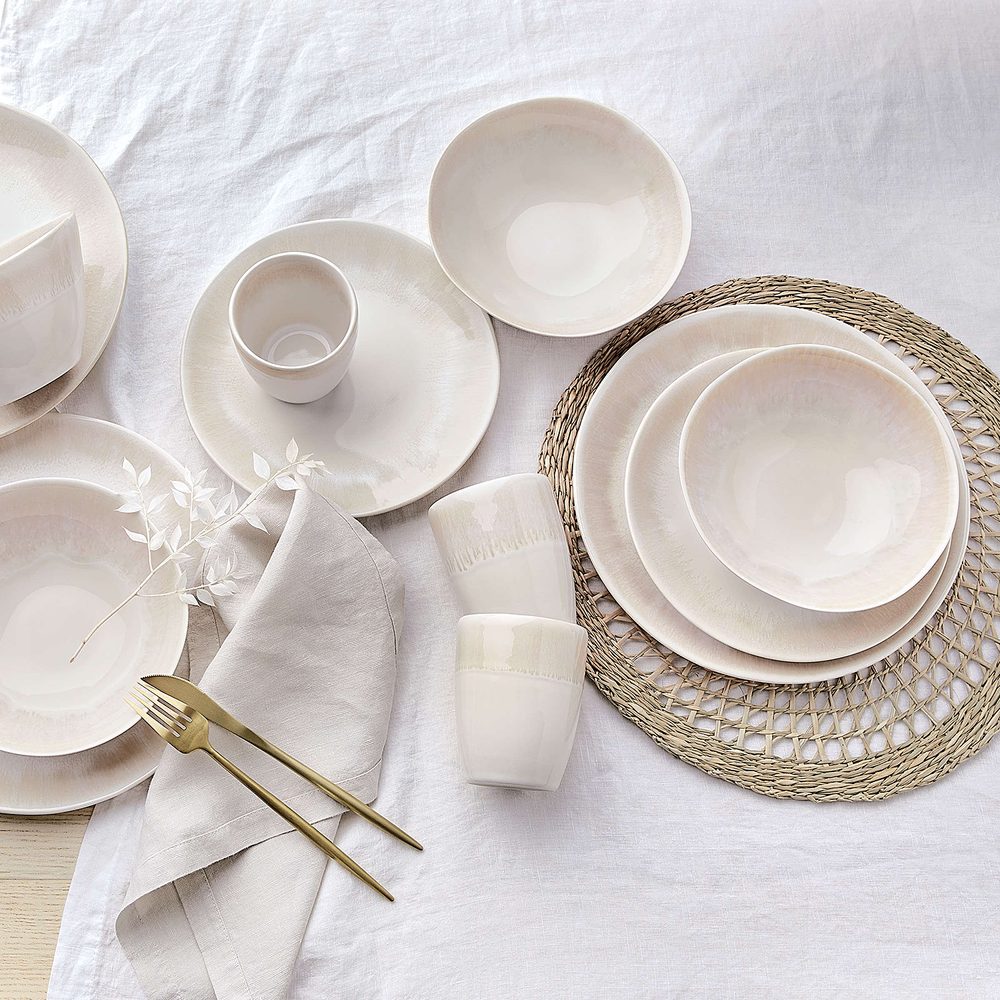 Rozměry: jídelní talíř: průměr 28 cm, V 3 cm snídaňový talíř: průměr 23 cm, V 3 cm miska: průměr 19 cm, V 6 cm, objem: 550 ml šálek: průměr 8,5 cm, V 10,5 cm, objem: 300 ml Materiál: kamenina Dodateční informace: Vhodné do myčky nádobí. Vhodné do mikrovlnné trouby. Produkt byl zpracován speciální technikou glazury (reaktivní glazura), barva vzniká až po procesu vypalování, tudíž se barva jednotlivých produktů může lišit. S naší sérií nádobí ATLANTIS v trendy boho stylu a živých tvarech si na Váš prostřený…