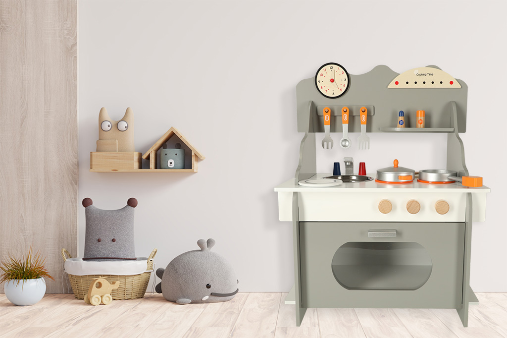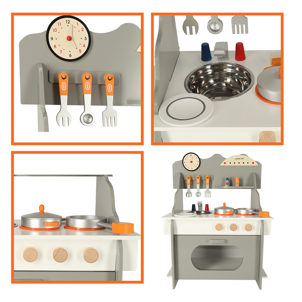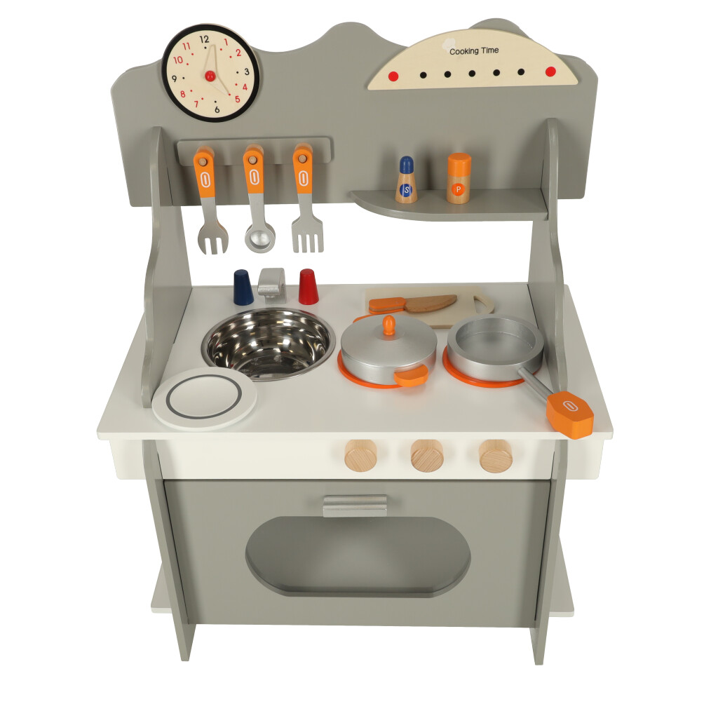 IK Dřevěná dětská kuchyňka s příslušenstvím - šedá
