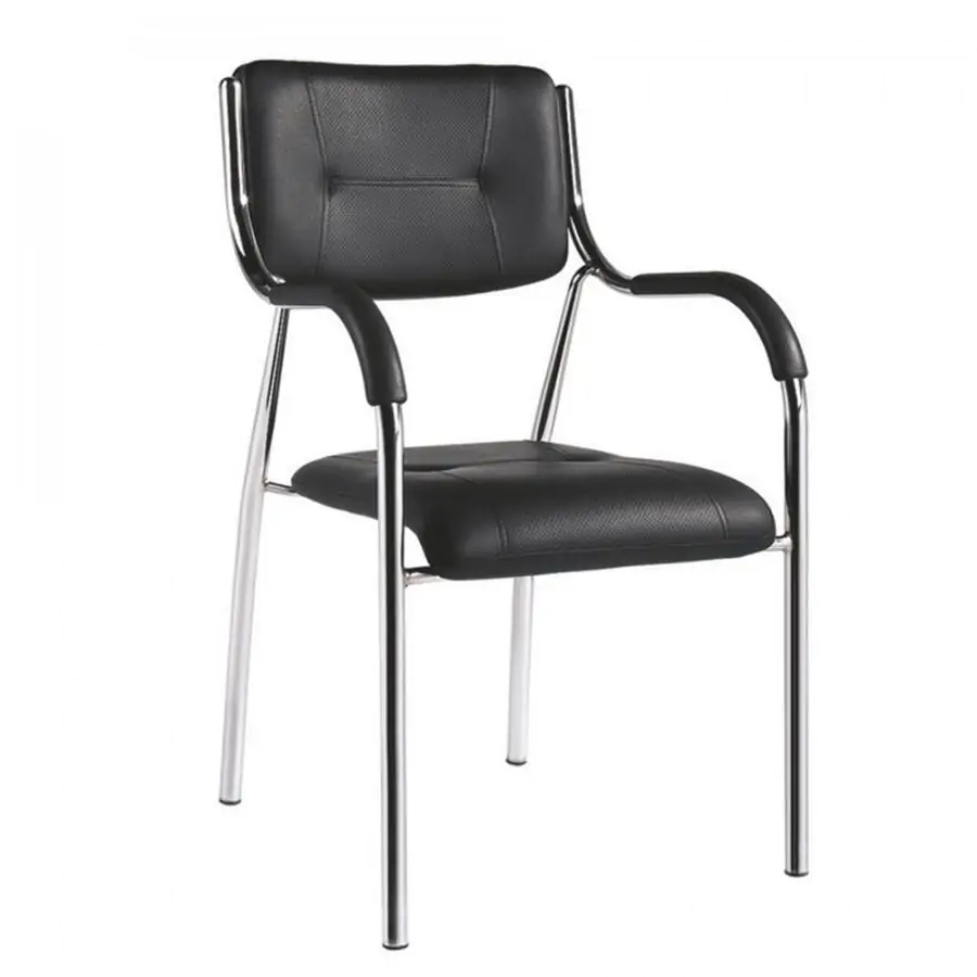 Konferenční židle v moderním designu. Konstrukci tvoří pevný kov v barvě chromu. Čalouněna je černou ekokůží. Židle jsou stohovatelné. Hloubka sedu: 46 cm Šířka sedu: 43 cm Šířka zádové opěrky: 45 cm Výška zádové opěrky: 43,5 cm