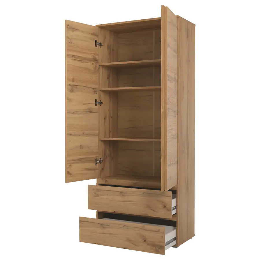 Skříň IMAGE 7 zlatý dub krásně zapadne do všech místností. Hladký nábytek hraje důležitou roli v moderních domácnostech, žádné zdobné prvky, jen rovný povrch a jednoduchý vzhled. Tato skvělá skříň má dvoje dveře, za kterými se nacházejí tři police. Ve spodní části skříně naleznete dvě široké zásuvky, s kovovými pojezdy, na prádlo a doplňky. Skříň je možné doplnit i o další produkty z nábytkové řady IMAGE. Dodáváno v demontu.