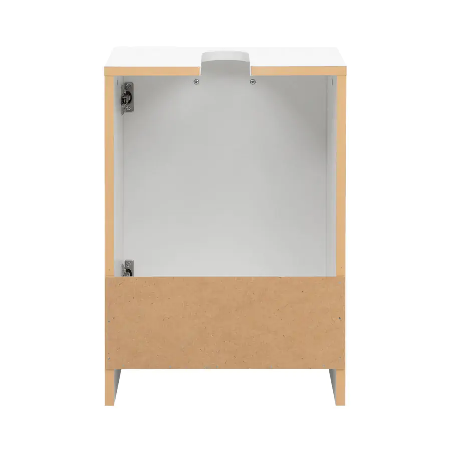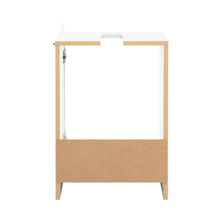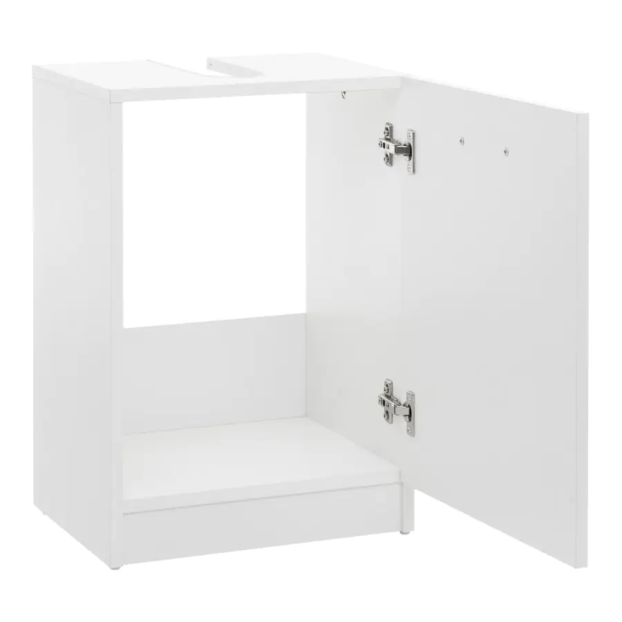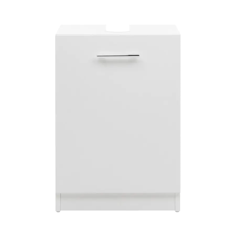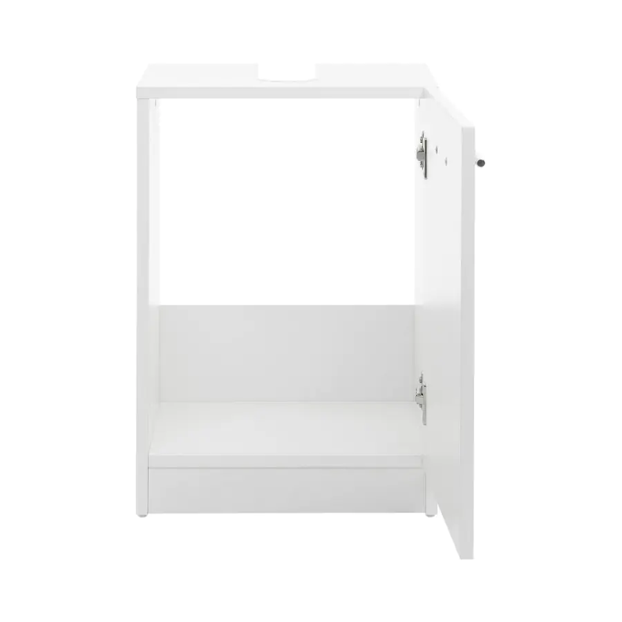 Skříňka pod umyvadlo v elegantním bílém provedení je ideálním doplňkem pro vaši koupelnu. Jednoduchý a čistý design skříňky přináší do prostoru svěžest a moderní vzhled. Skříňka disponuje jedněmi dvířky, která skrývají praktický úložný prostor, kde můžete pohodlně uschovat všechny potřebné věci do koupelny, jako jsou čistící prostředky, ručníky nebo kosmetika. Dodávané v demontu.