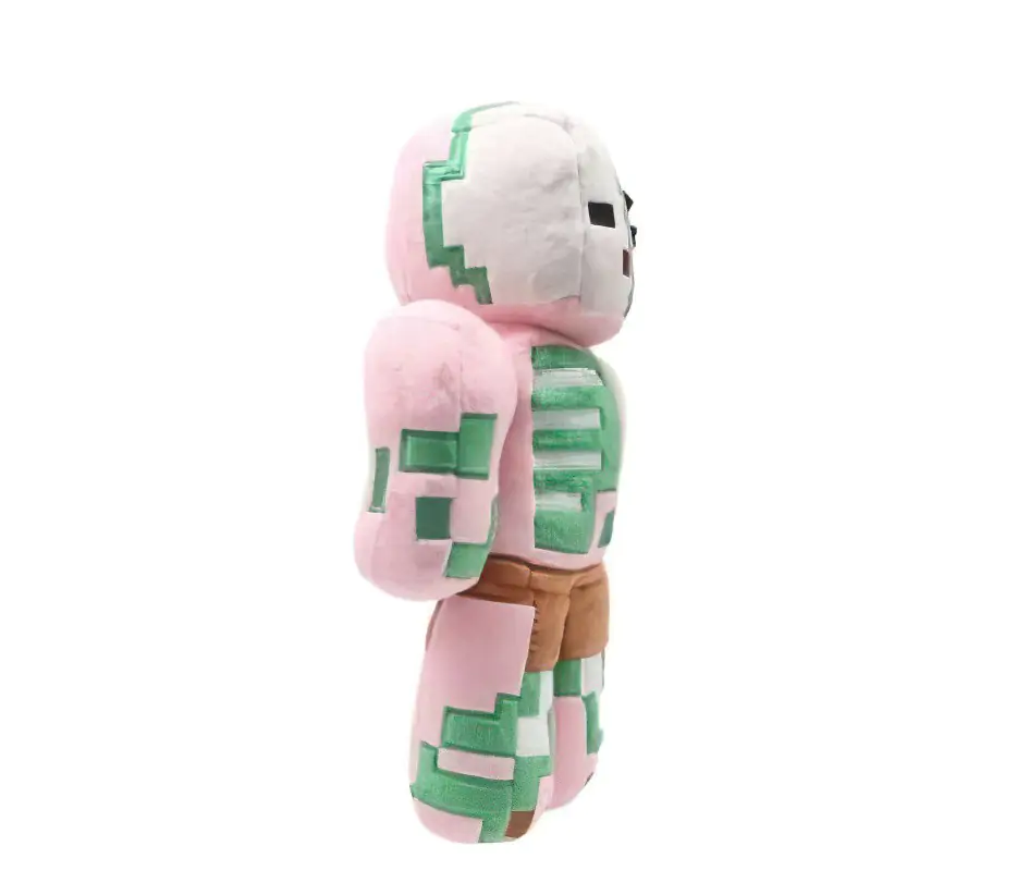 Plyšová hračka inspirovaná postavou zombie z Minecraftu v jedinečném provedení. Tato hračka věrně zobrazuje ikonického nepřítele z populární hry, jehož vzhled je ihned rozpoznatelný pro všechny fanoušky Minecraftu. Zombie je vyobrazena s charakteristickou růžovo-zelenou barevnou kombinací, která zachycuje její zraněný a rozkládající se vzhled. Detaily, jako jsou pixelové oči a oblečení, zůstanou věrné hernímu designu. V Minecraftu jsou zombie jedni z nejčastějších protivníků, kteří se objevují v noci a ohrožují hráče. Tyto postavy jsou známé svou vytrvalostí a schopností útočit v hordách. I když jsou pomalé, jejich počet a neúnavnost z nich činí obávané protivníky v herním světě. Tato plyšová hračka je vyrobena z měkkého a kvalitního materiálu, který zajišťuje příjemný dotek a odolnost. Díky své velikosti 23 cm je ideální pro hraní, ale také jako stylový dekorační prvek v dětském pokoji. Hračka může sloužit nejen jako společník pro malé fanoušky Minecraftu, ale také jako sběratelský kousek pro ty, kteří chtějí mít část svého oblíbeného světa vždy na dosah. Skvělý dárek pro všechny milovníky této kultovní hry. Doporučeno pro děti od 3 let. Rozměry 23 x 15 x 5 cm (v x š x h) Materiál látka