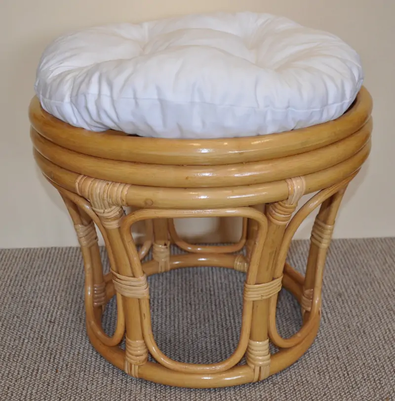 Ratanová taburetka velká medová polstr bílý Taburetka je vyrobena z přírodního ratanu. Průměr taburetky je 40 cm Výška taburetky je 38 cm Taburetka má nosnost 110 kg Polstr je vyrobený v České republice a je pratelný na 40o C