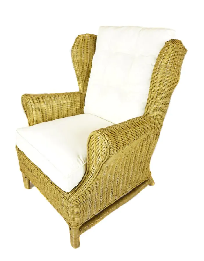 Ratanové křeslo ušák medové polstr bílý FL Ratanový nábytek - velice pohodlné ratanové křeslo je vyrobeno z přírodního ratanu. Barva ratanové konstrukce i výpletu je medová. Součástí pohodlného křesla je dvoudílný sedák v bílé barvě. Velikost křesla 82x80x100 cm. Výška sedu je 46 cm. Nosnost křesla 130 kg.