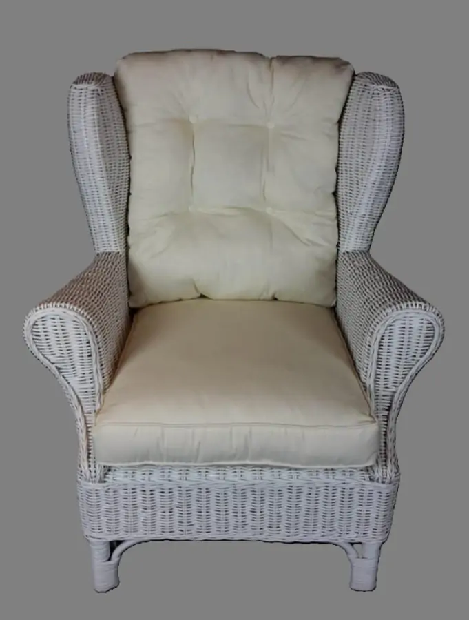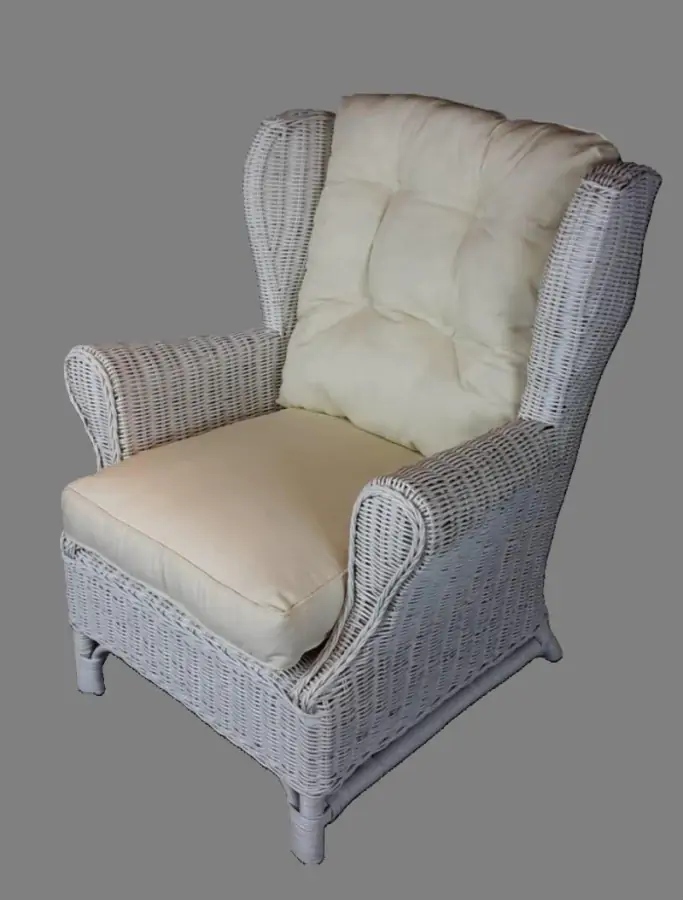 Ratanové křeslo ušák bílé polstr bílý FL Ratanový nábytek - velice pohodlné ratanové křeslo je vyrobeno z přírodního ratanu. Barva ratanové konstrukce i výpletu je bílá. Součástí pohodlného křesla je dvoudílný sedák v bílé barvě. Velikost křesla 82x80x100 cm. Výška sedu je 46 cm. Nosnost křesla 130 kg.