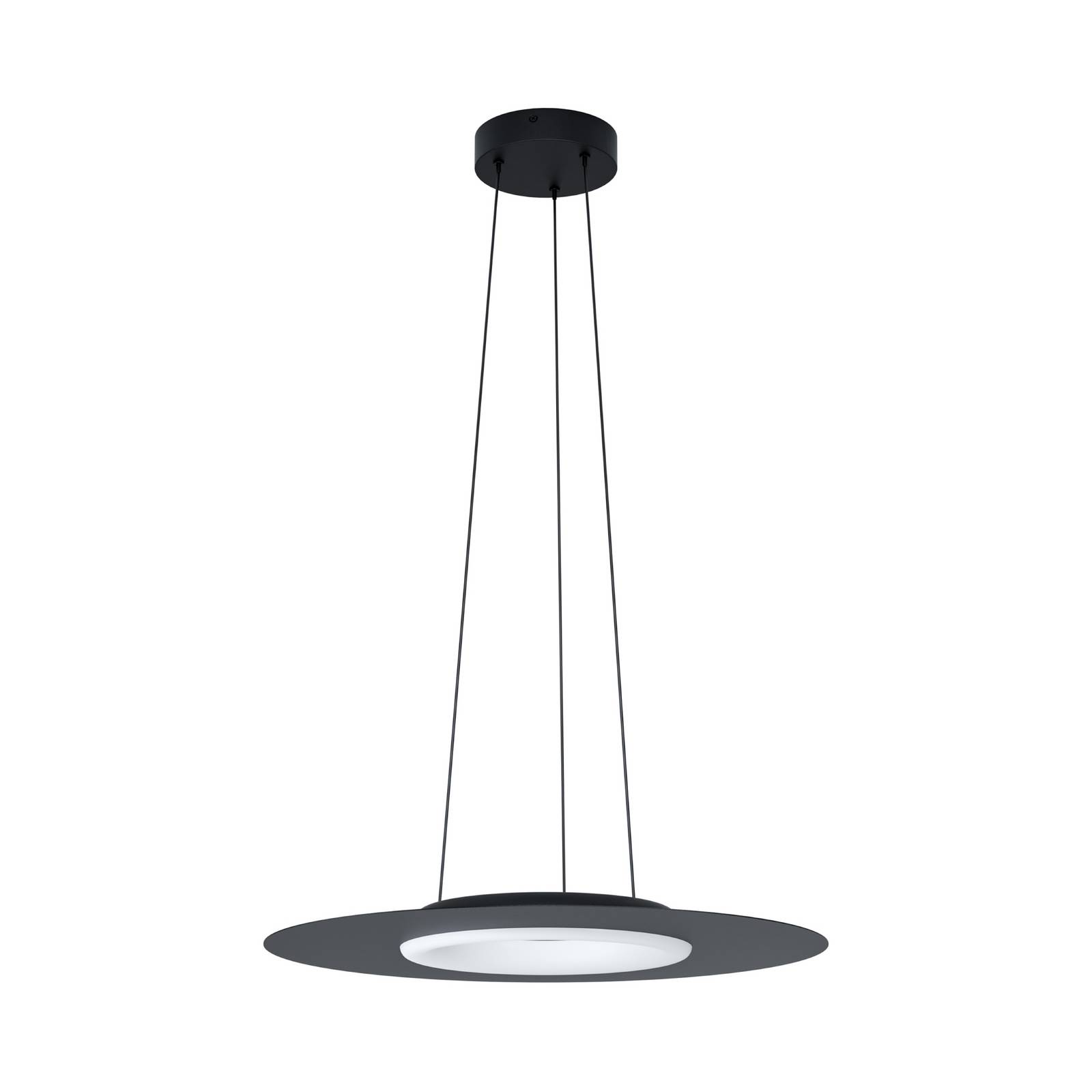 Závěsné svítidlo Compo Rosso-C LED s technologií Bluetooth a proměnným světlem Kovové stínidlo ve tvaru disku v černé barvě s vnitřním opálovým difuzorem a jemný drátěný závěs s černým vrchlíkem tvoří závěsné LED svítidlo Compo Rosso-C z chytré řady EGLO connect. Po spárování přes Bluetooth s chytrým telefonem nebo tabletem lze světlo nastavit podle potřeby. Světlo lze ovládat pomocí aplikace od teplé bílé přes denní světlo až po barevné efektní světlo s libovolným jasem. Zde je také možné použít funkci časovače nebo vytvářet skupiny svítidel. Funkce / kompatibilita: - Moderní technologie Bluetooth mesh s chráněnou sítí a předáváním příkazů mezi zařízeními. - možnost ovládání pomocí bezplatné aplikace Smart Control od společnosti AwoX (k dispozici pro iOS a Android) - ovládání pomocí odpovídajícího dálkového ovladače EGLO connect (není součástí dodávky). - stmívatelné - Řízení barev RGB - Regulace bílého světla: teplá bílá (2 700 K) - denní světlo (6 500 K)