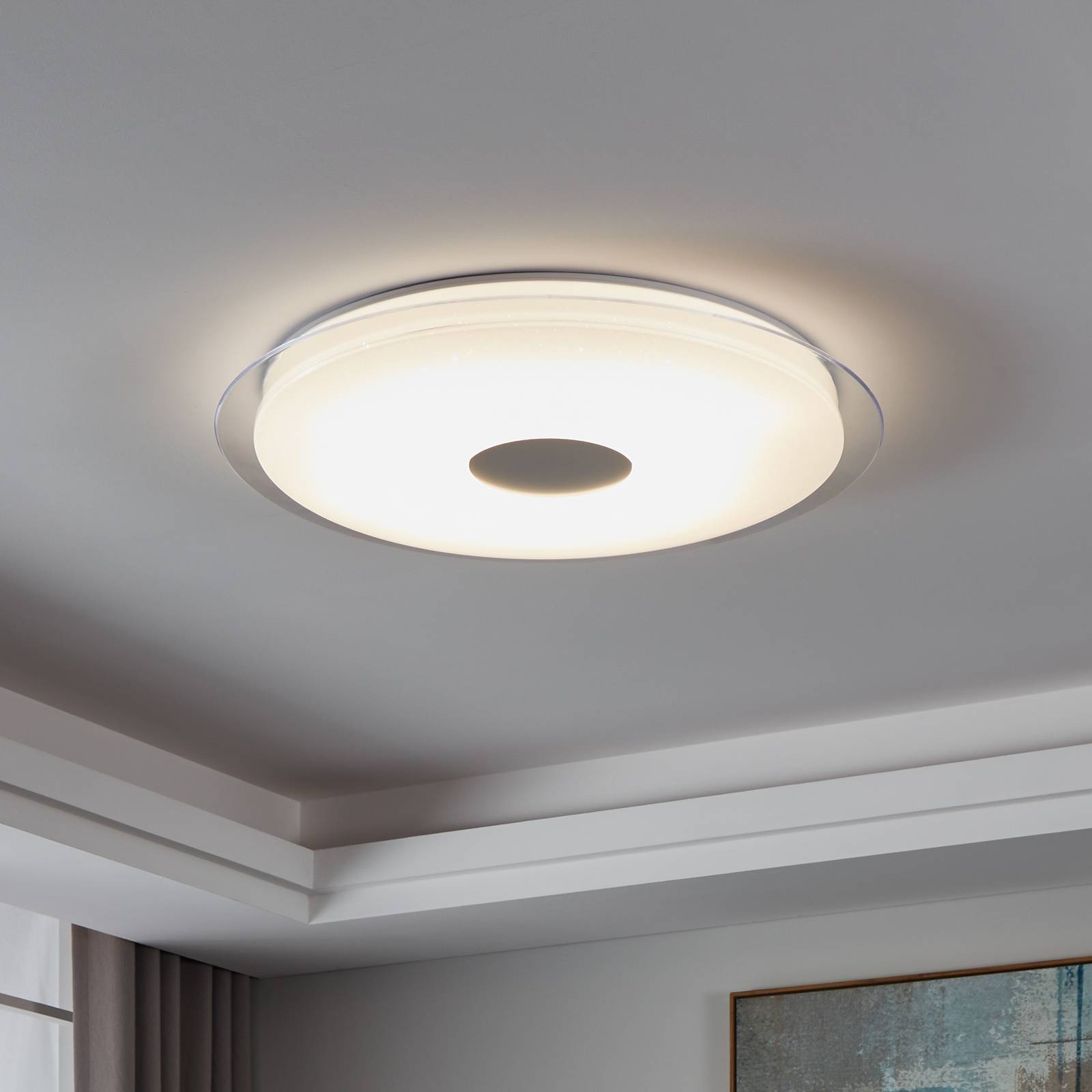 S křišťálovým efektem - stropní svítidlo Lanciano-Z LED, chytře ovladatelné Jiskřivé a funkční - moderní stropní svítidlo Lanciano-Z LED poskytuje všestranné a funkční světlo. Skládá se z plastového difuzoru s lehkým křišťálovým efektem, který vytváří zvláštní atmosféru. Integrované LED diody mohou měnit barvu světla od teplé bílé až po denní světlo a jsou ovládány pomocí aplikace, hlasového ovládání nebo klasickým dálkovým ovladačem (viz příslušenství). Díky použité technologii je možné stropní svítidlo Lanciano-Z LED integrovat i do stávajících kompatibilních systémů chytré domácnosti od jiných výrobců, které využívají ZigBee 3.0. Funkce / kompatibilita: - ovladatelné pomocí bezplatné aplikace AwoX HomeControl - kompatibilní se systémy chytré domácnosti od jiných výrobců, které využívají ZigBee 3.0. Funkce / kompatibilita: - ovladatelné pomocí bezplatné aplikace AwoX HomeControl - kompatibilní se systémy chytré domácnosti od jiných výrobců, které využívají ZigBee 3.0.0 - možnost přímého propojení s Amazon Echo a Google Home - zvýšený dosah díky přídavné síti Bluetooth - kompatibilní se všemi položkami řady EGLO connect-c Bluetooth - ovladatelné vhodným dálkovým ovladačem i bez přístupu k internetu (viz příslušenství)
