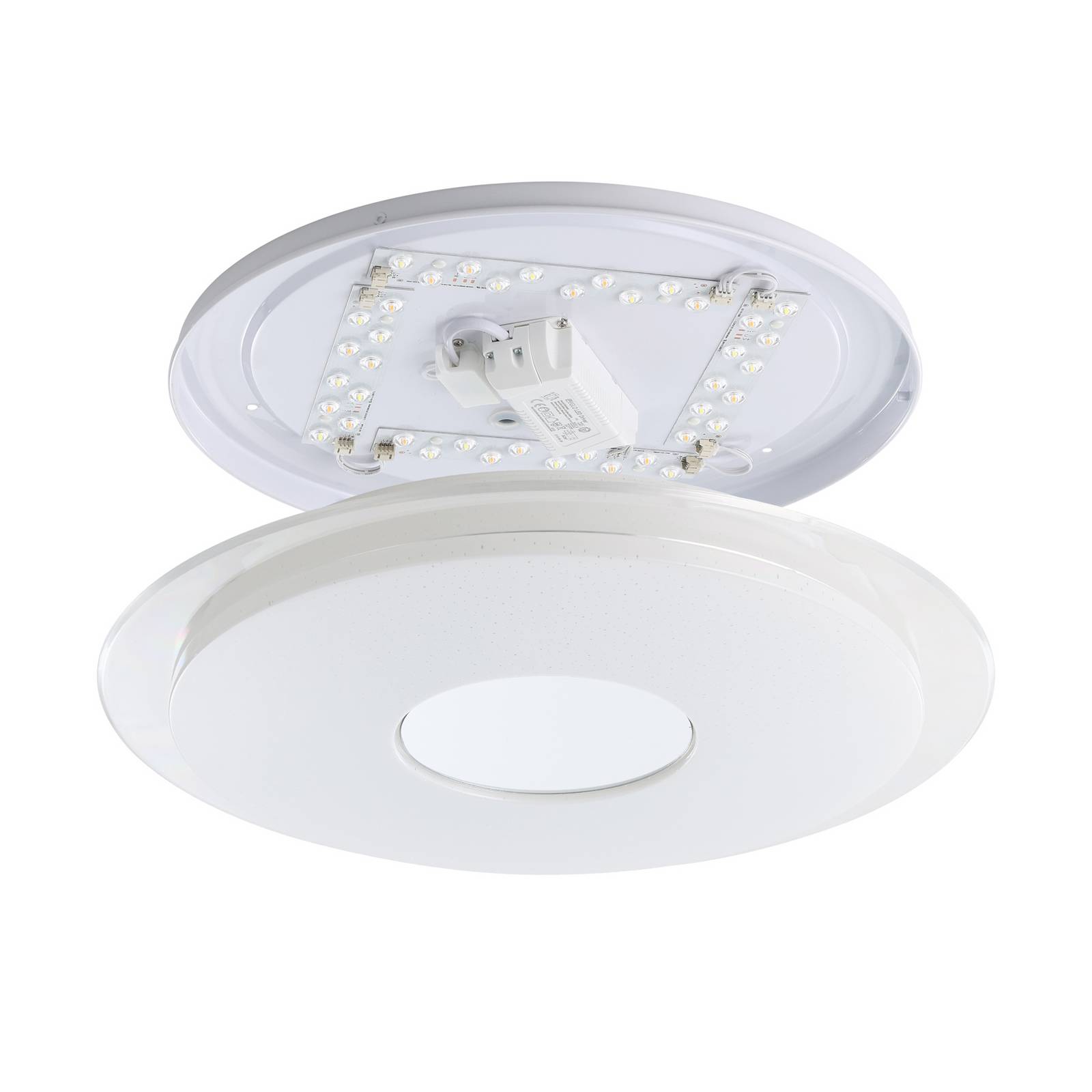 S křišťálovým efektem - stropní svítidlo Lanciano-Z LED, chytře ovladatelné Jiskřivé a funkční - moderní stropní svítidlo Lanciano-Z LED nabízí všestranné a funkční světlo. Skládá se z plastového difuzoru, který se objevuje se světelným křišťálovým efektem, a vytváří tak zvláštní atmosféru. Integrované LED diody lze měnit od teplé bílé až po denní světlo a ovládat je pomocí aplikace, hlasového ovládání nebo klasického dálkového ovladače (viz příslušenství). Díky použité technologii je možné stropní svítidlo Lanciano-Z LED integrovat i do stávajících kompatibilních systémů chytré domácnosti od jiných výrobců, které používají ZigBee 3.0. Funkce / kompatibilita: - Ovládání pomocí bezplatné aplikace AwoX HomeControl - Kompatibilita se systémy chytré domácnosti od jiných výrobců, které používají ZigBee 3.0. - možnost přímého propojení s Amazon Echo a Google Home - Větší dosah díky dodatečné síti Bluetooth - kompatibilní se všemi výrobky řady EGLO connect-c Bluetooth - ovládání pomocí vhodného dálkového ovladače i bez přístupu k internetu (viz příslušenství)