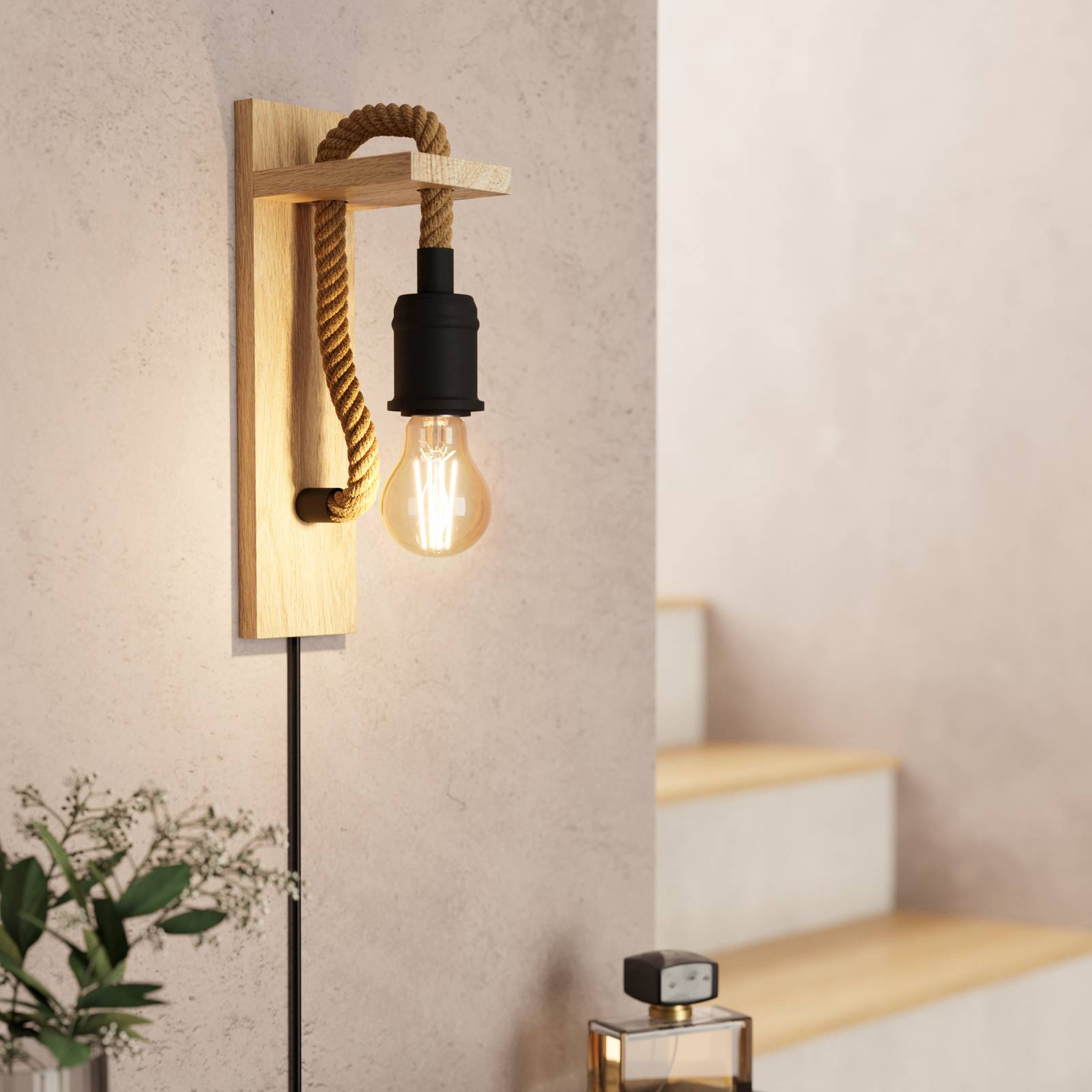 EGLO Nástěnné světlo Rampside dřevo lanko, bez stínidla