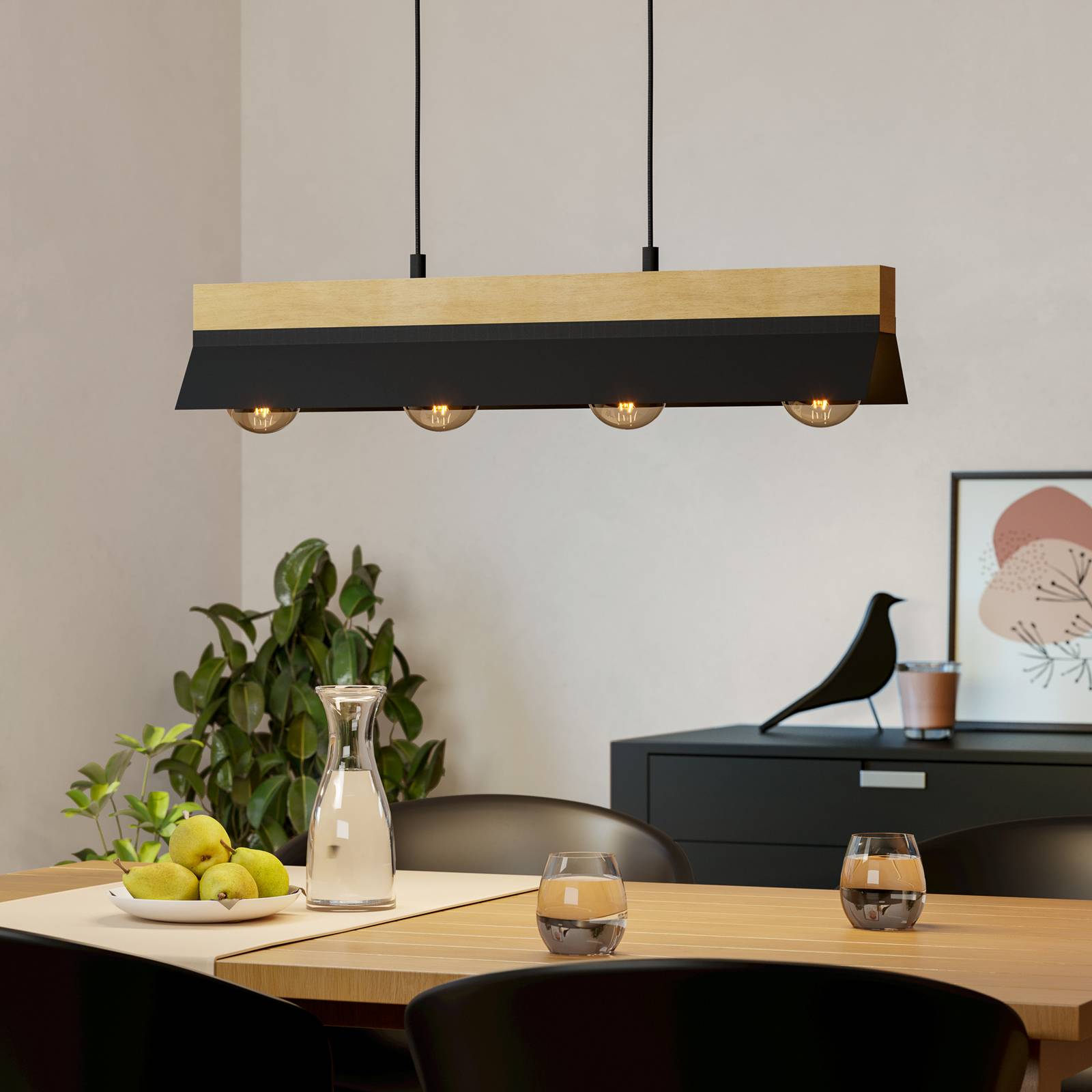 EGLO Závěsná lampa Tarrafo černá, přírodní dřevo, 4 světla