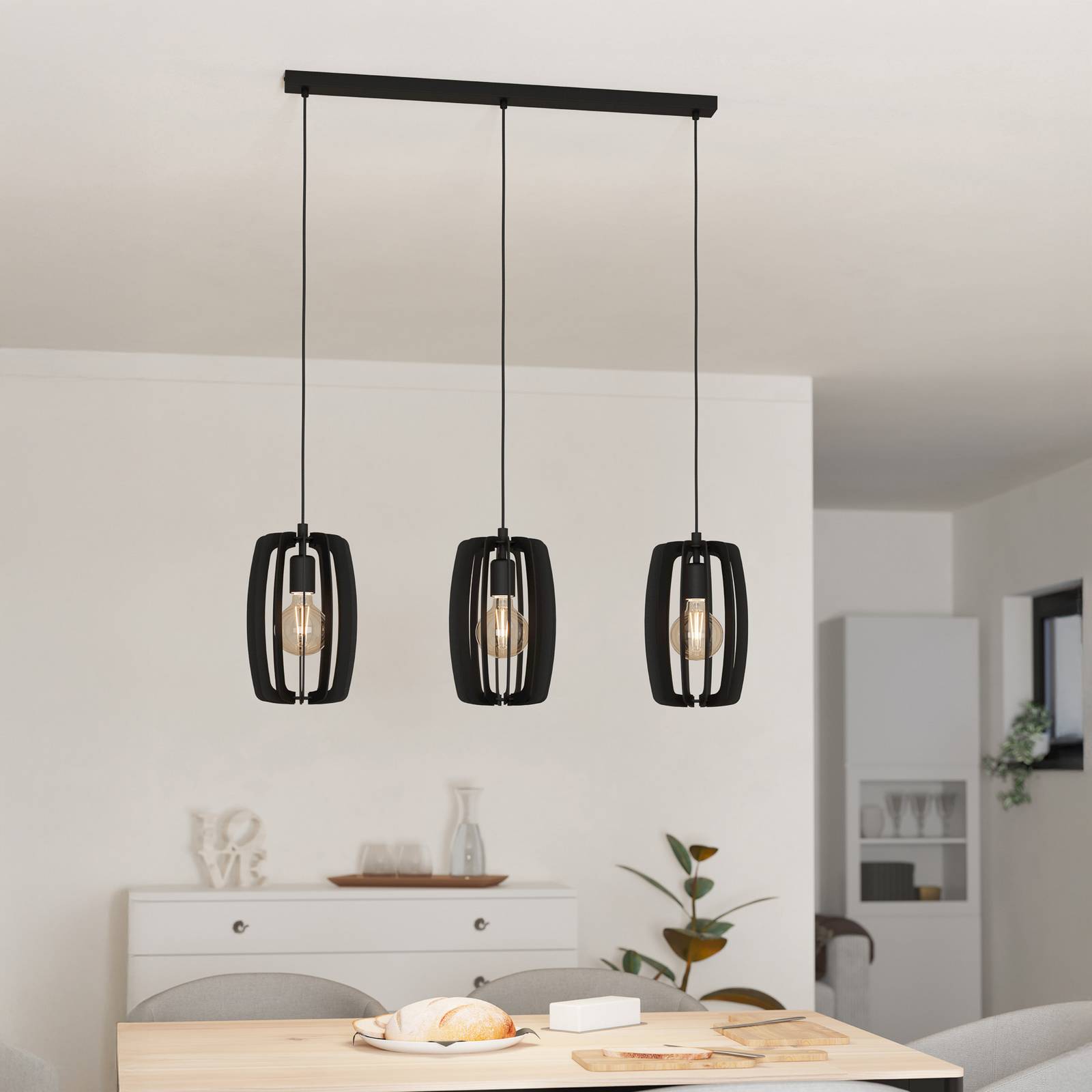 EGLO Závěsné svítidlo Bajazzara, tři klecová stínidla, černá barva
