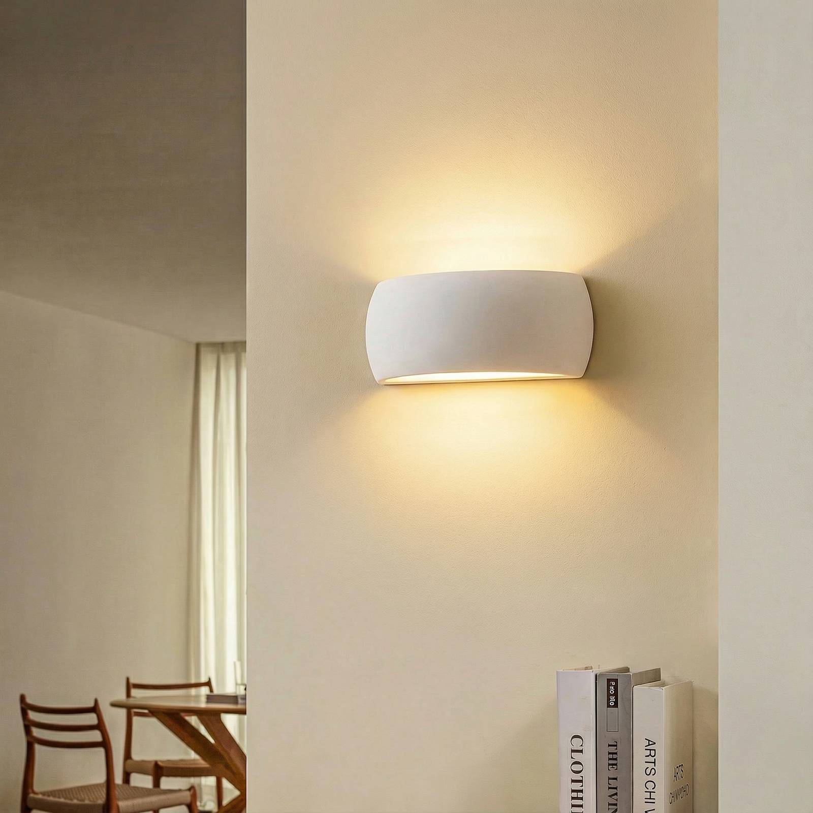 Nástěnné světlo Curve: elegance a univerzálnost v keramice Nástěnné světlo Curve z bílé keramiky spojuje moderní design s funkčním osvětlením. Jeho minimalistický vzhled se dokonale hodí do různých obytných prostor, jako jsou obývací pokoje, chodby a jídelny. Kombinace keramiky a skla dodává svítidlu nadčasovou eleganci, která zkrášlí každou místnost. Zvláštností svítidla Curve je možnost individuálního ovládání osvětlení. Svítidlo je stmívatelné pomocí externího stmívače, který umožňuje flexibilní nastavení intenzity světla. Svítidlo Curve, vyrobené v EU, je synonymem kvality a stylových řešení osvětlení, která jsou nejen esteticky příjemná, ale také funkční.