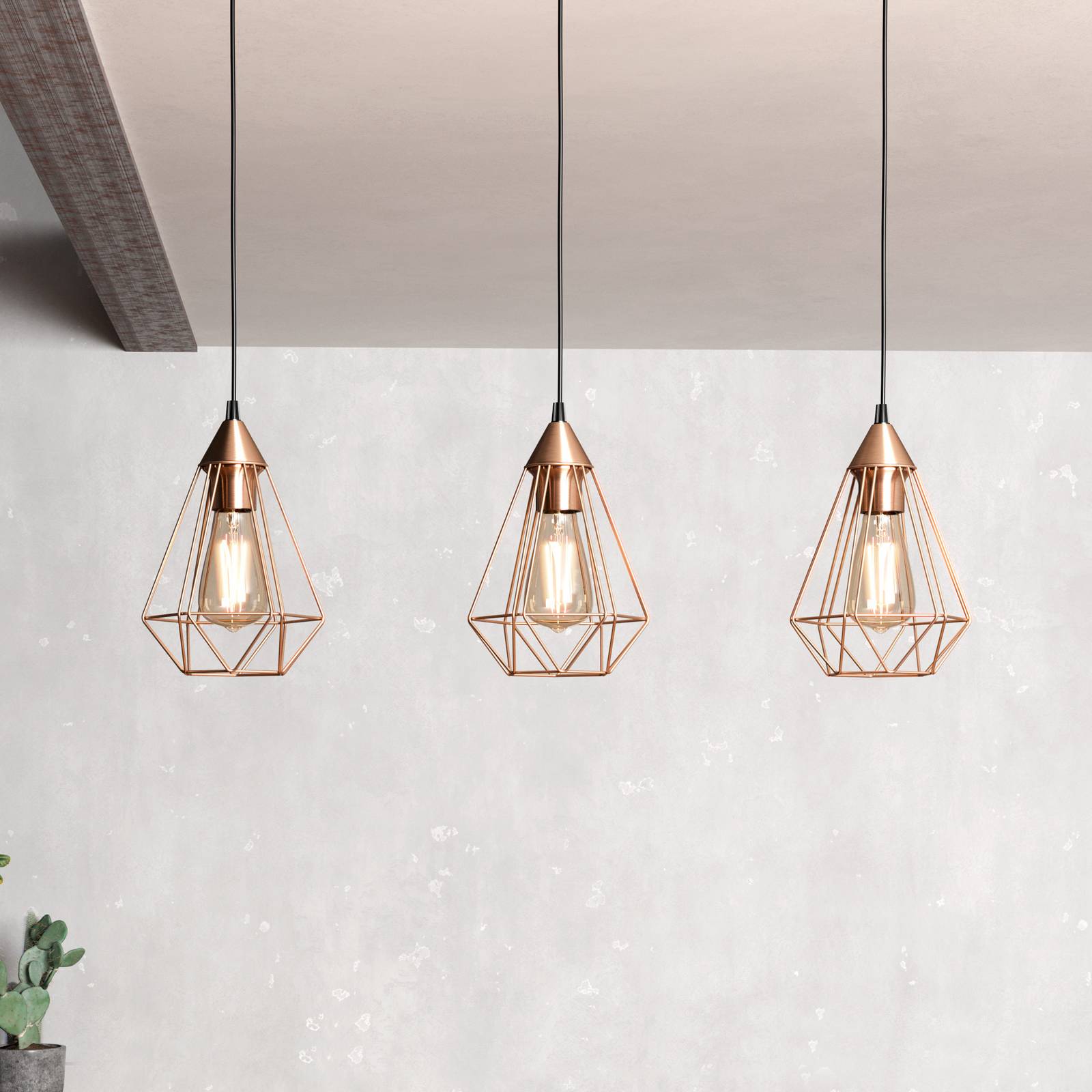 EGLO Závěsné světlo Tarbes, měď, 3 žárovky, podlouhlé